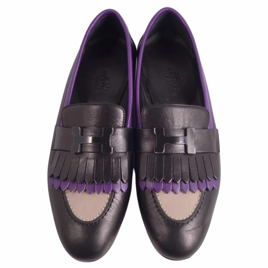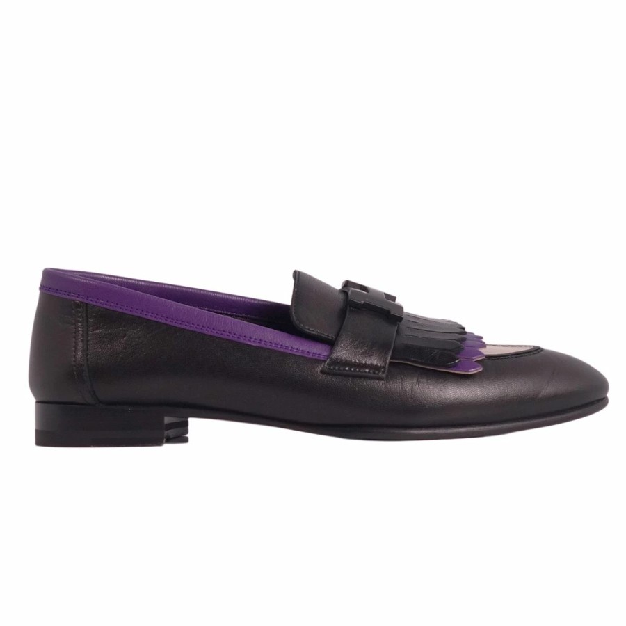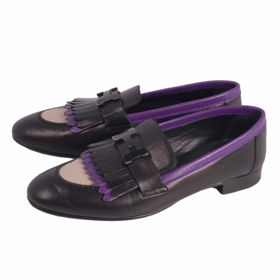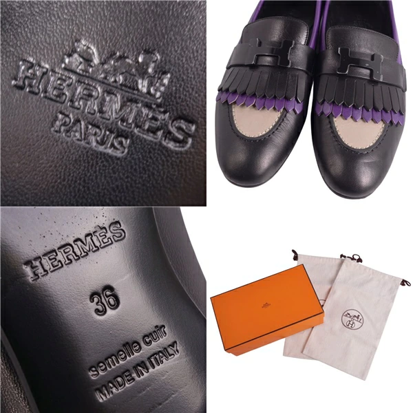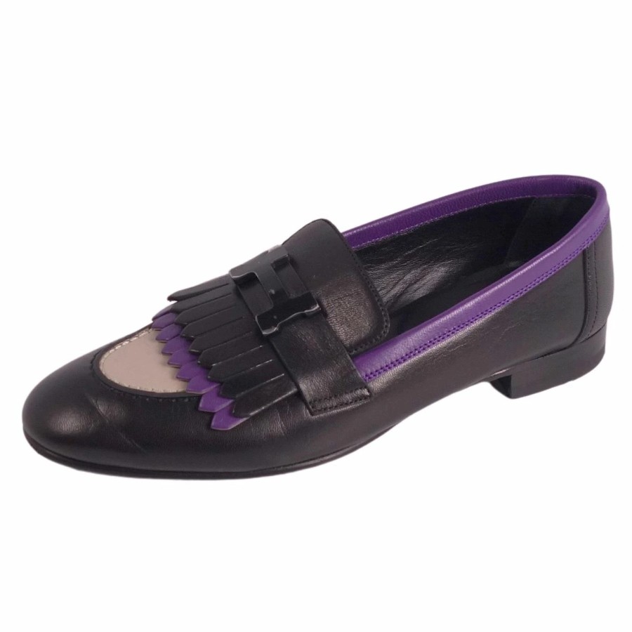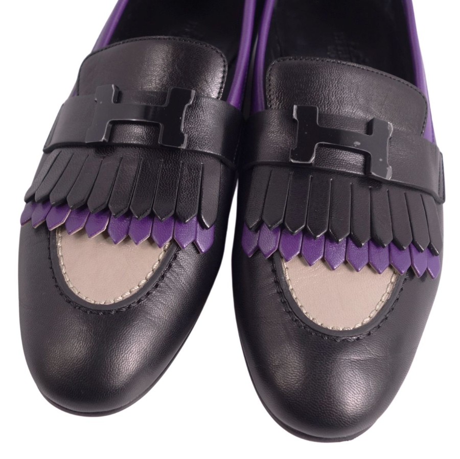 エルメス HERMES ローファー 2023 モカシン ロワイヤル コンスタンス Hロゴ金具 レザー シューズ レディース ブラック/パープル サイズ36(23cm相当)