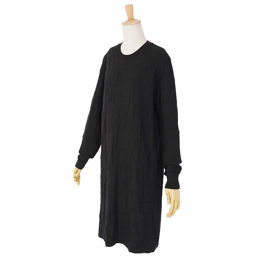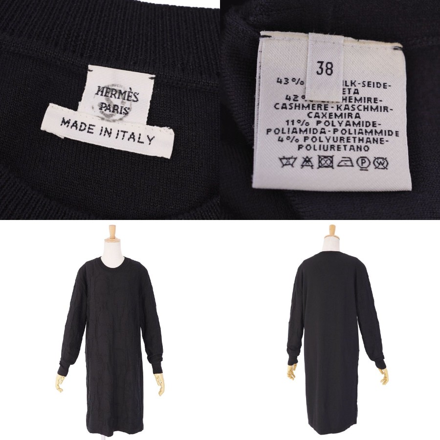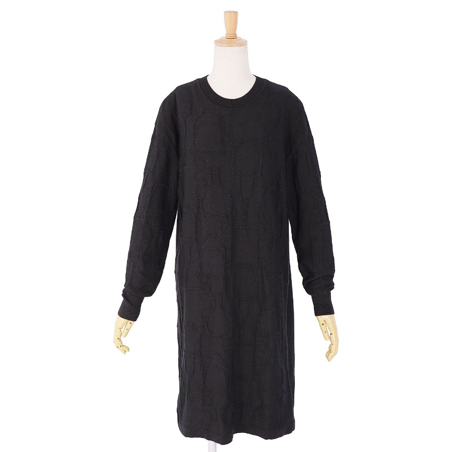 エルメス HERMES 20AW ニット ワンピース セーター ロングスリーブ 総柄 シルク カシミヤ トップス レディース ブラック サイズ38(M相当)