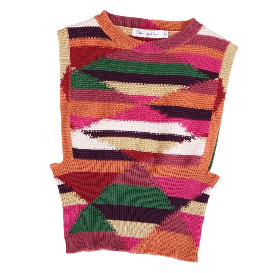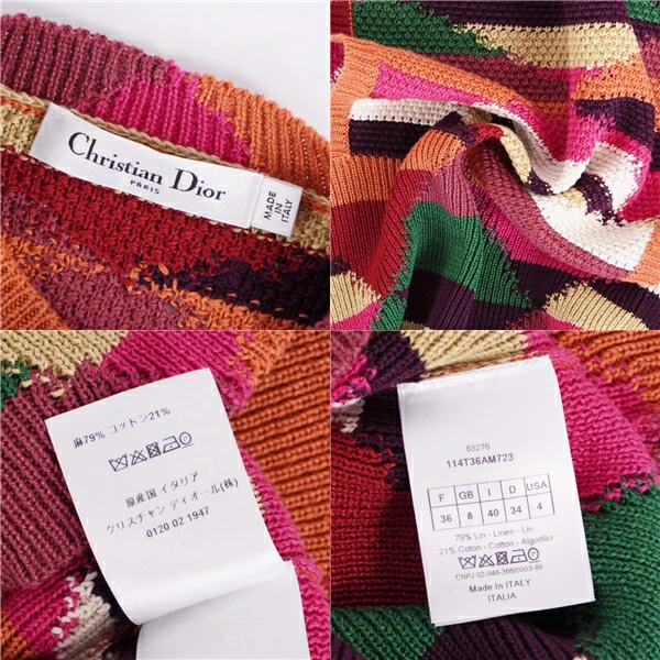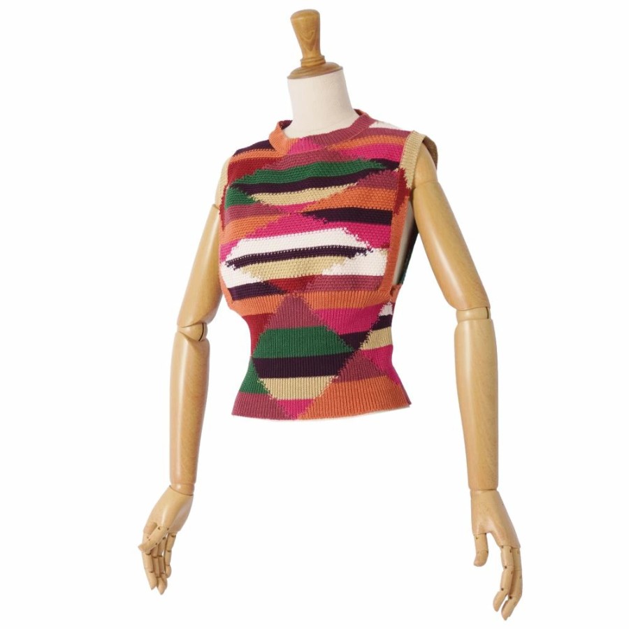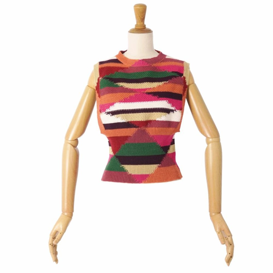 クリスチャンディオール Christian Dior ニット 2021 セーター ノースリーブ 総柄 リネン コットン トップス レディース イタリア製 マルチカラー サイズ36(S相当)
