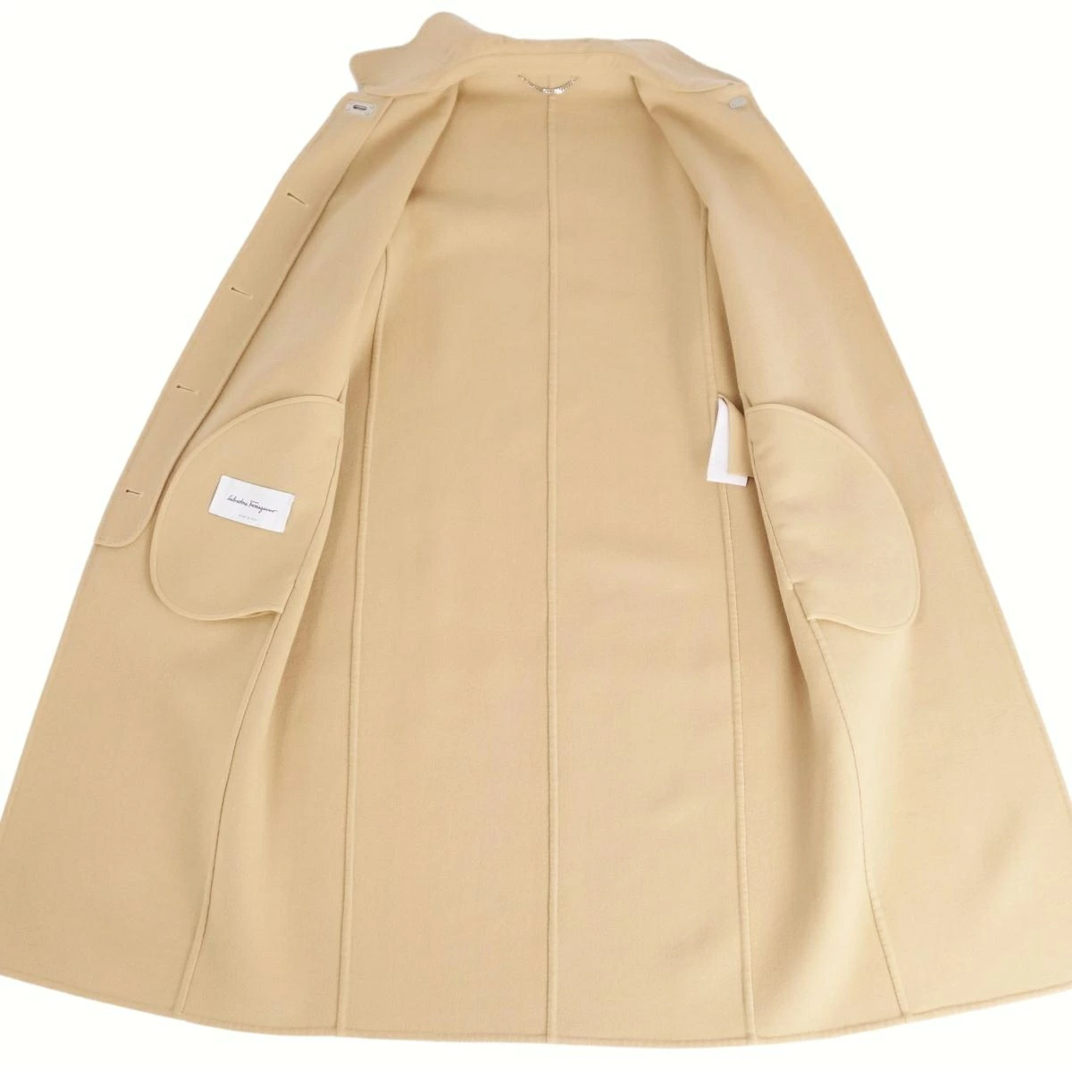 ■商品名サルヴァトーレ フェラガモ Salvatore Ferragamo コート ステンカラーコート バルマカーンコート ロングコート ガンチーニ金具 ウール カシミヤ アウター レディース ベージュ サイズ38(S相当)■状態説明・肌触りの良いウールカシミヤ素材を贅沢に使用した、Salvatore Ferragamoのステンカラーコート(バルマカーンコート)です♪・ナチュラルなカラーリングにアイコニックなガンチーニ金具が魅力的な一着です◎・イタリア製・国内正規取扱品です。・USEDですが使用感も少なくキレイな状態です!【季節感:秋冬】【付属品:なし】■素材表地:ウール90% カシミヤ10% 袖裏:アセテート75% シルク25%■カラーベージュ■表記サイズ38(S相当)■実寸サイズ着丈:約104.5cm身幅:約48cm肩幅:約36cm袖丈:約60cm■状態ランクSA 使用感のほぼ無いとてもキレイなUSED品■店舗管理番号ce07om-rm10f13471womens_beige womens_s