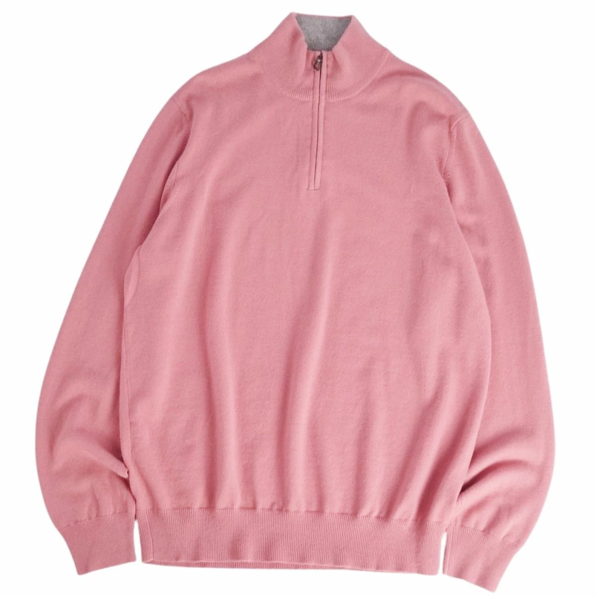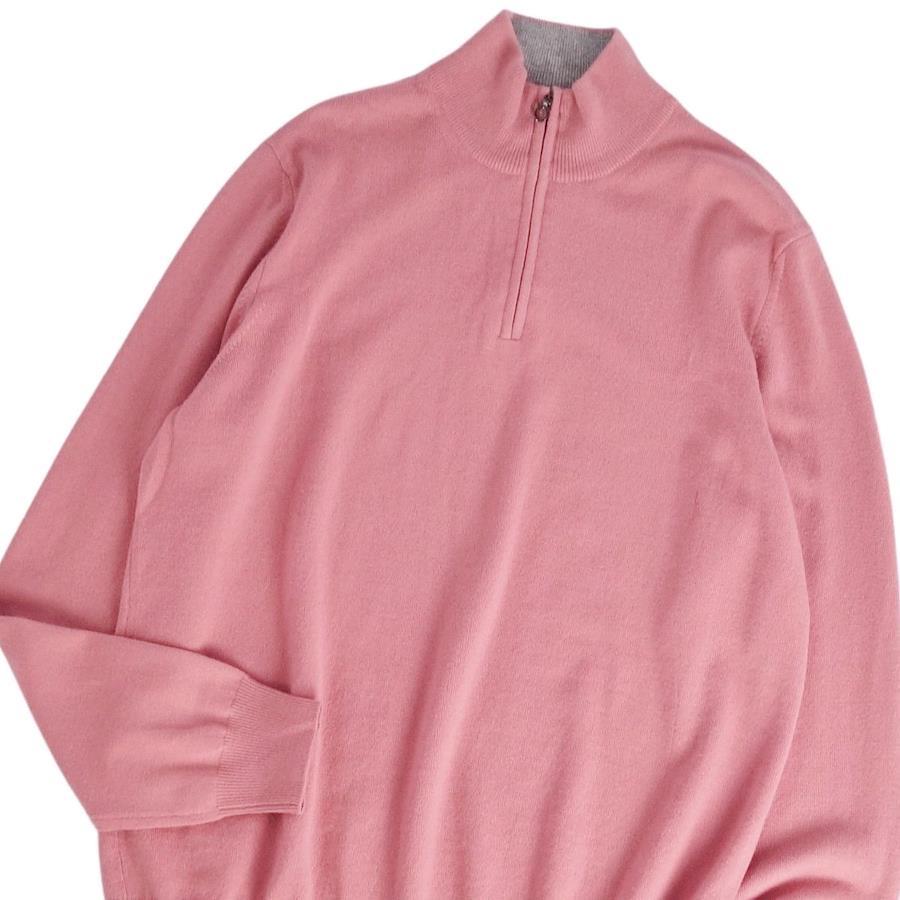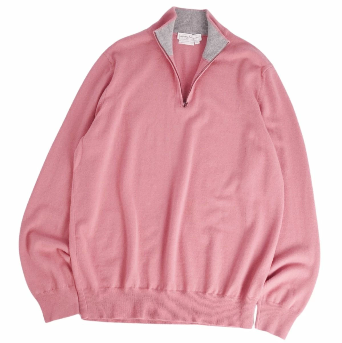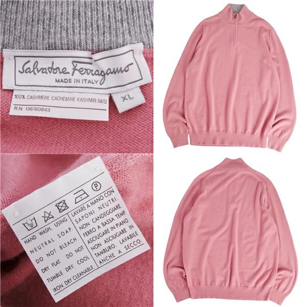 [Excellent condition] Salvatore Ferragamo knit sweater, half-zip, cashmere top, men's, made in Italy, XL, pink [used]