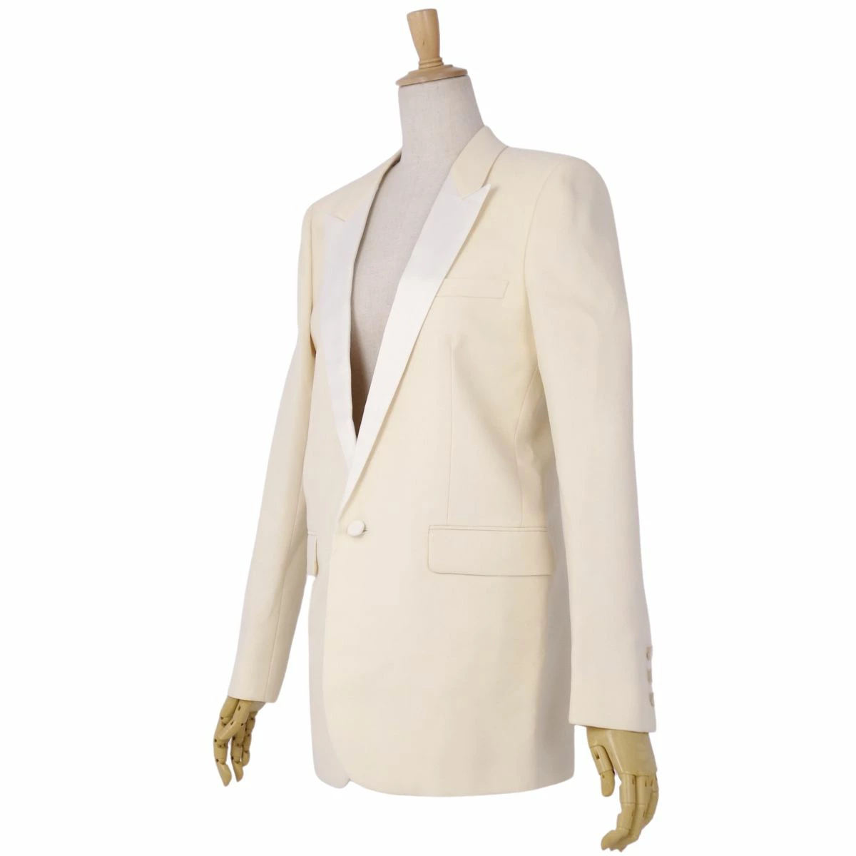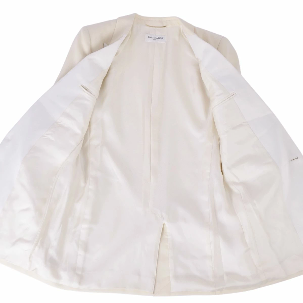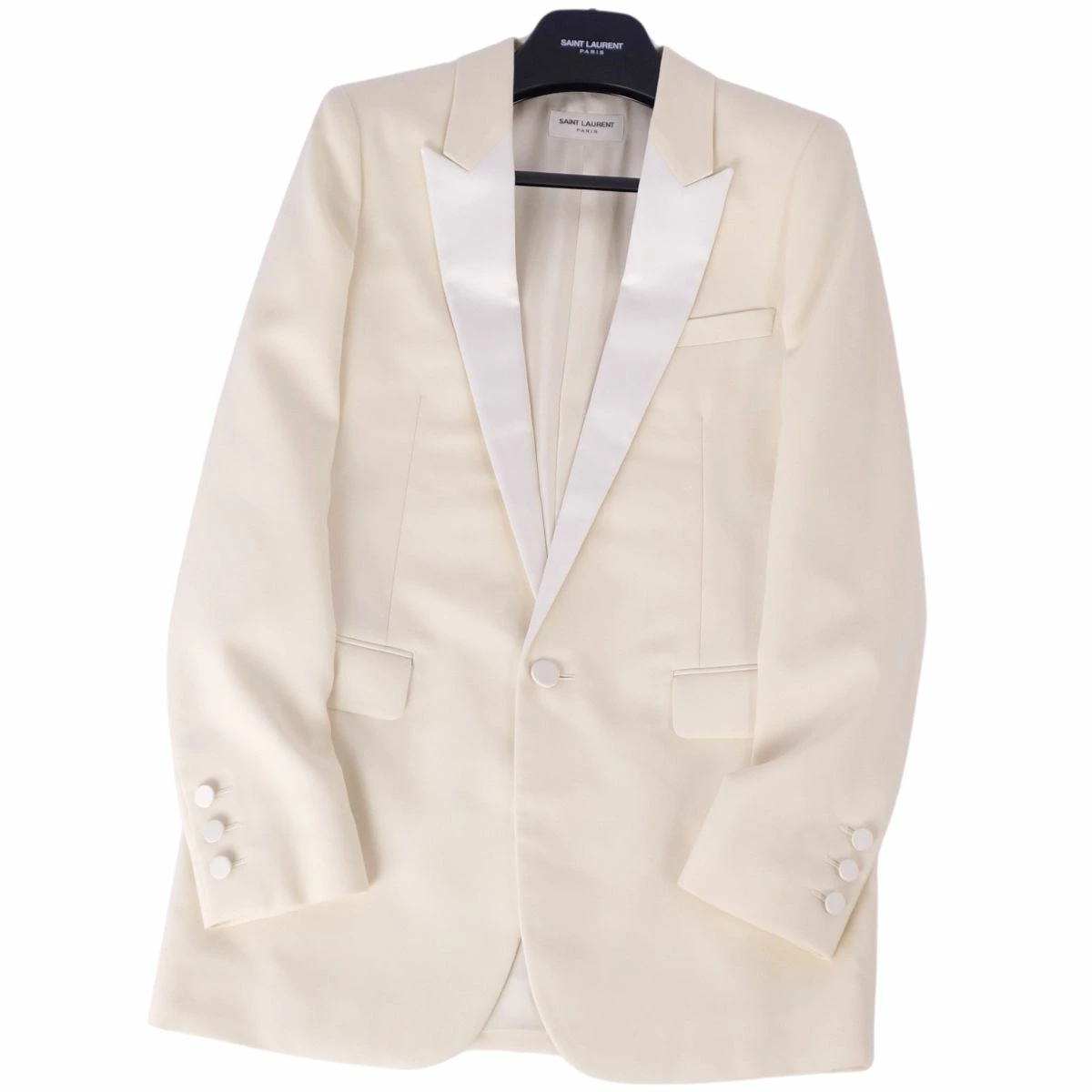 ■商品名サンローラン パリ SAINT LAURENT PARIS ジャケット テーラード ウール モヘア アウター レディース イタリア製 ホワイト サイズ38(M相当)■状態説明・上質なウールモヘアブレンド素材を使用した、SAINT LAURENT PARISのテーラードジャケットです♪・秋冬シーズンでお使い頂ける一品です◎・イタリア製・国内正規取り扱いの製品です。・USEDですが使用感も少なくキレイな状態です!【季節感:秋冬】【付属品:ガーメントケース/ハンガー】■素材表地:ウール70% モヘア30% 裏地:シルク100%■カラーホワイト■表記サイズ38(M相当)■実寸サイズ着丈:約71cm身幅:約45cm肩幅:約36cm袖丈:約60cm■状態ランクSA 使用感のほぼ無いとてもキレイなUSED品■店舗管理番号ce07do-rm10e32579womens_white womens_m