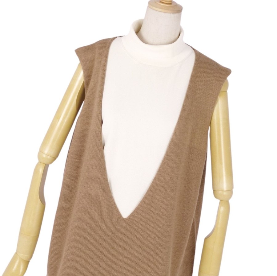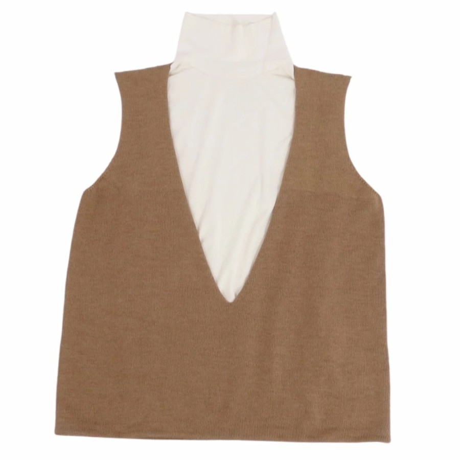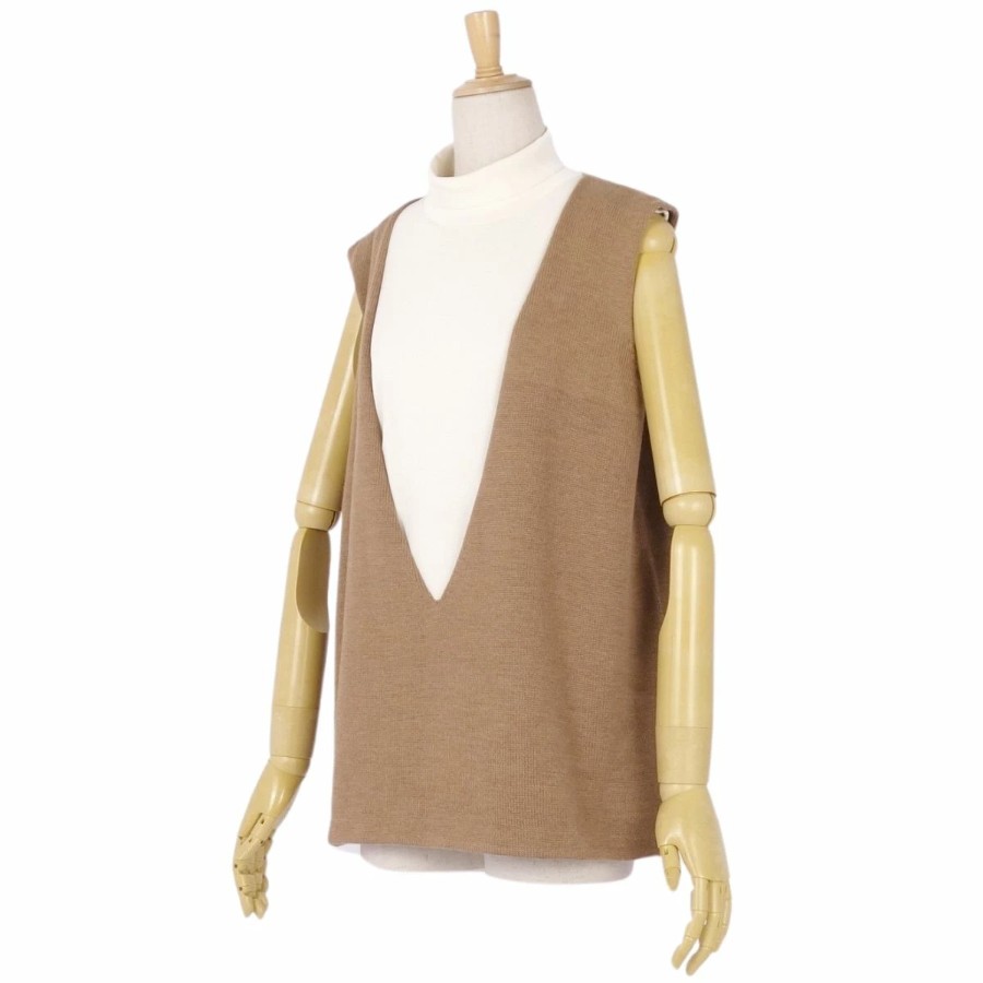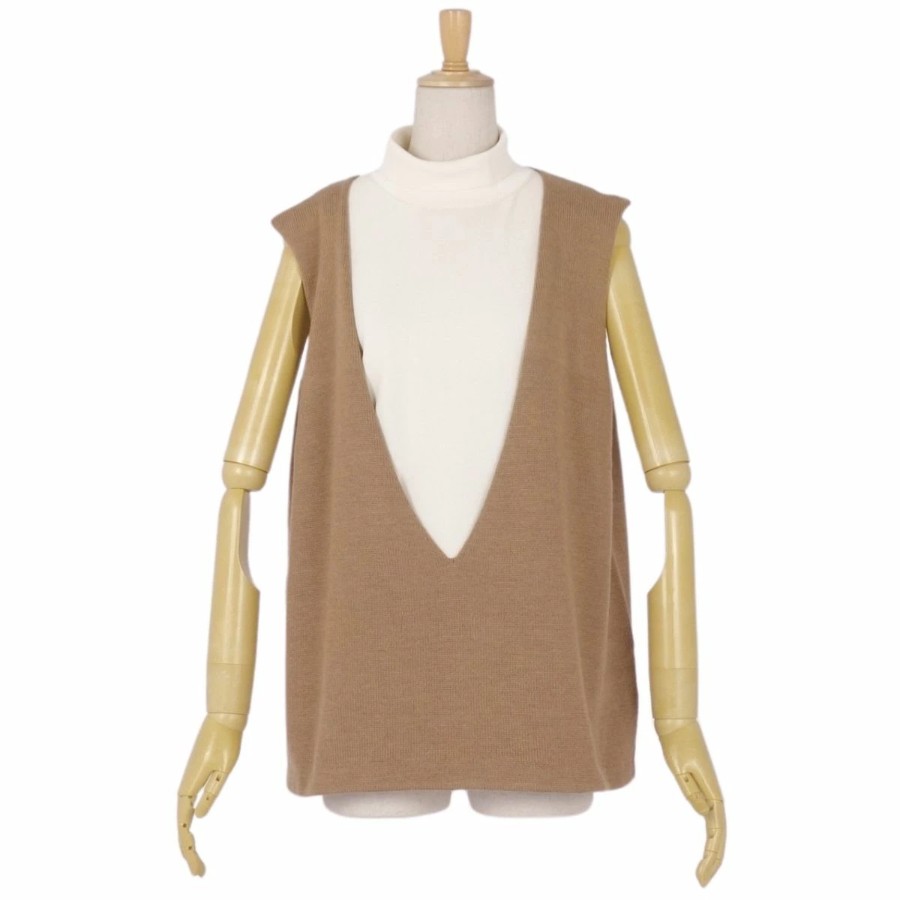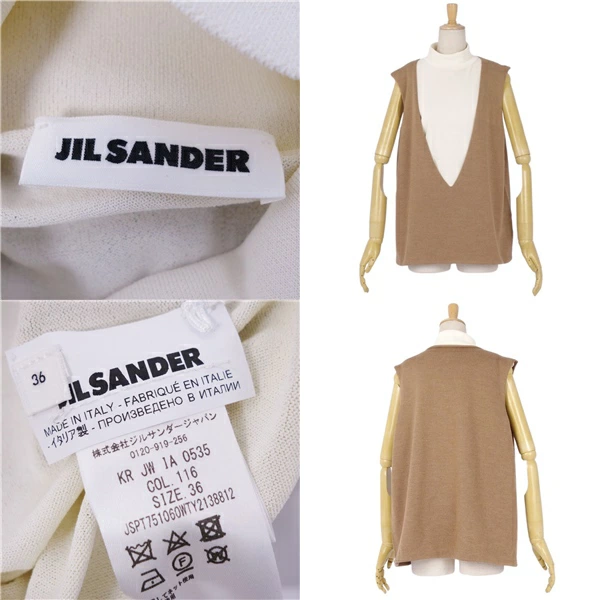 [Excellent Condition] Jil Sander Knit Sweater, High Neck, Layered, Sleeveless, Wool Top, Women's, Made in Italy, Size 36 (Equivalent to S), Brown [Pre-owned]