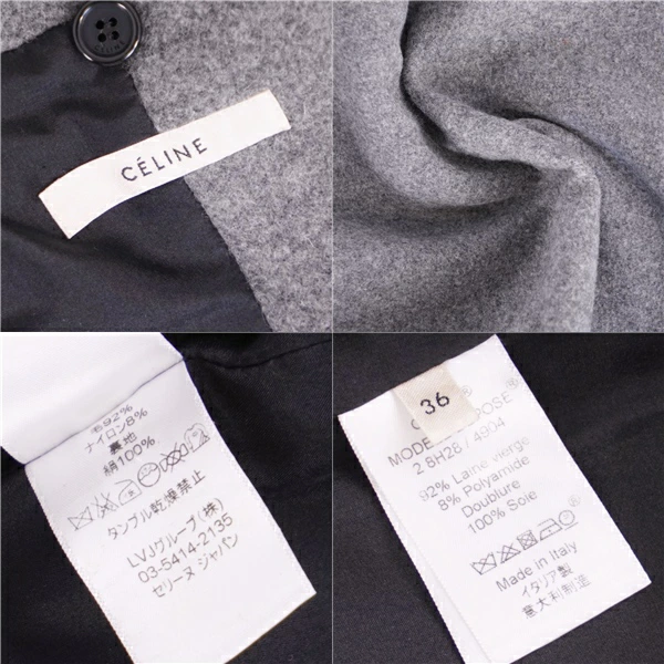 セリーヌ CELINE コート フィービー期 ロングコート クロンビーコート チェスターコート 無地 アウター レディース イタリア製 グレー サイズ36(XS相当)