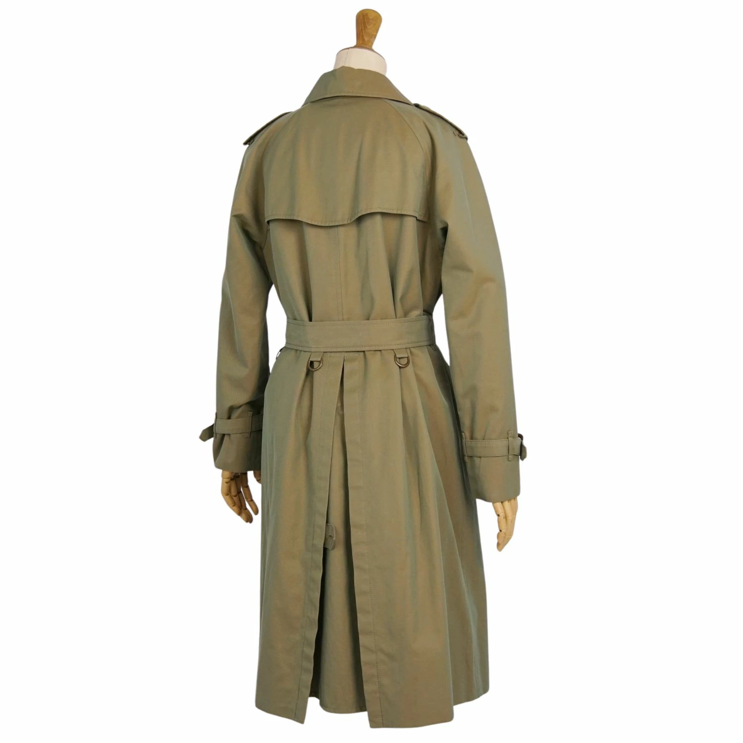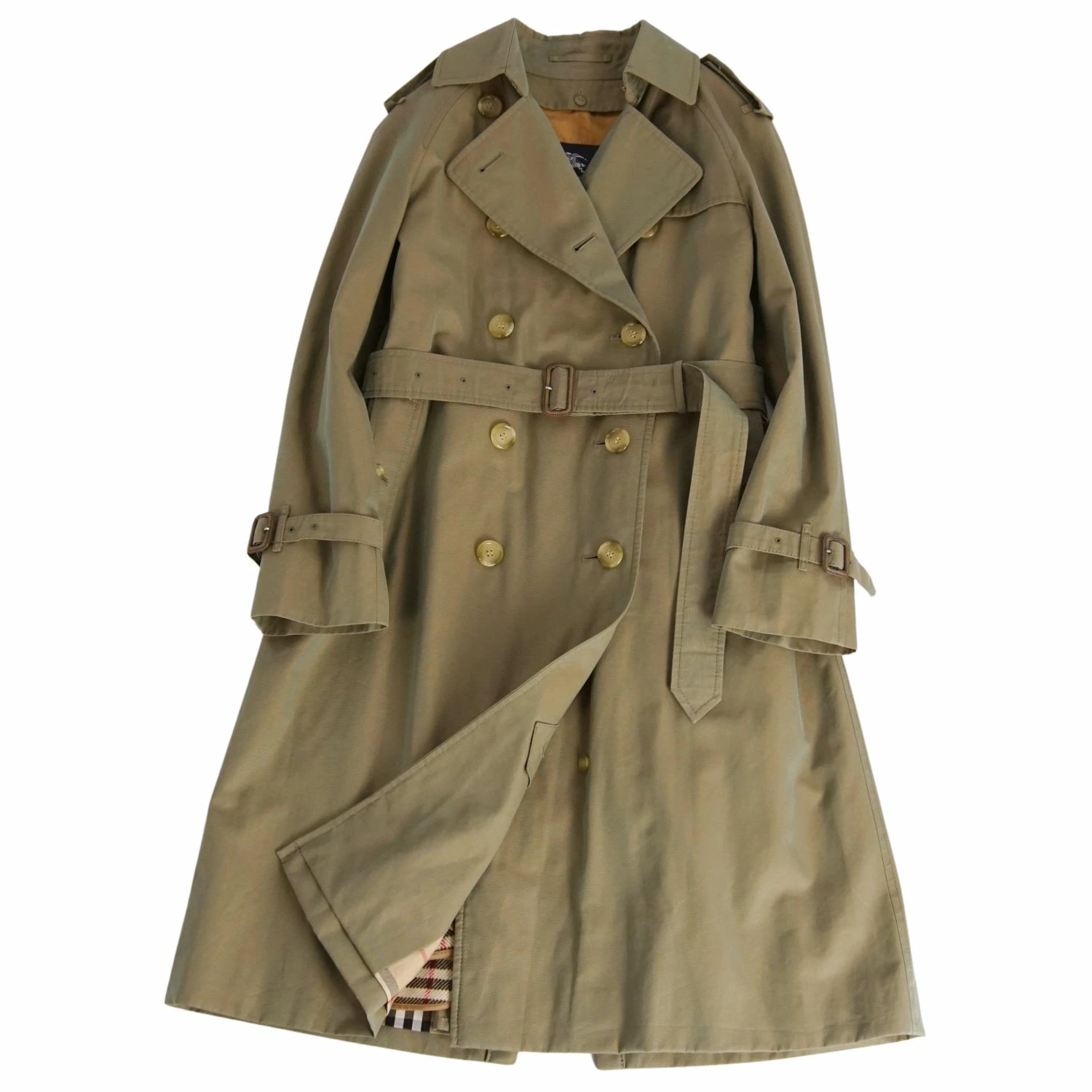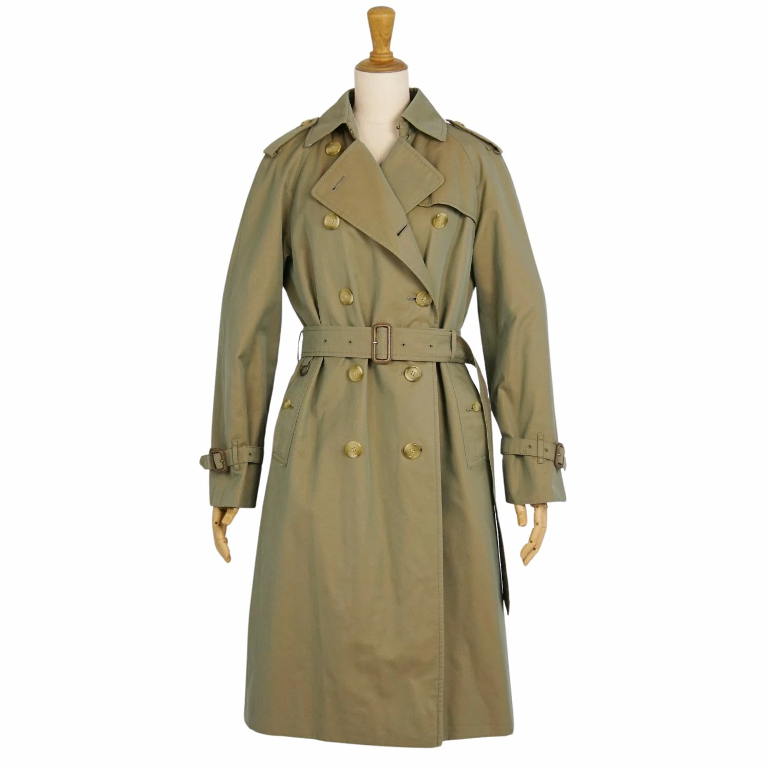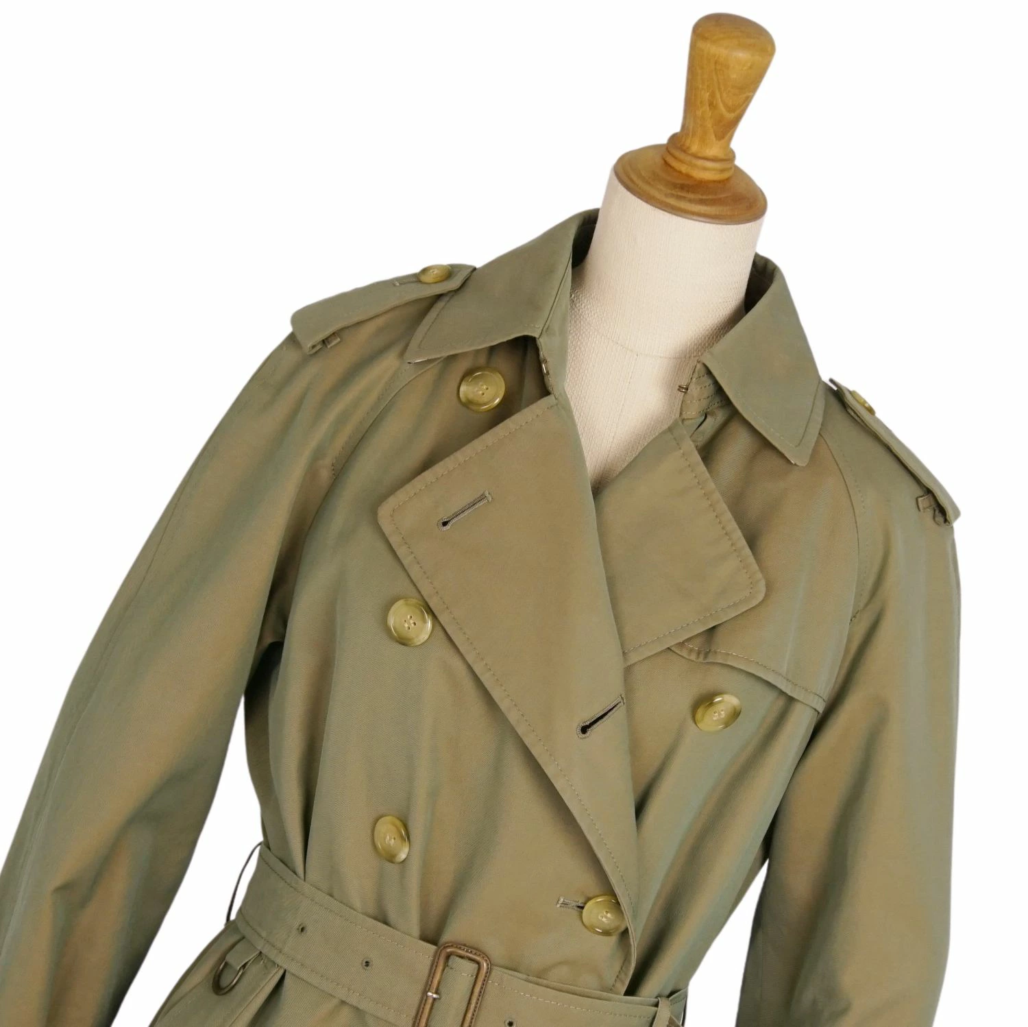 Pre-owned Burberry London trench coat with liner, 100% cotton, women's, size 9 (equivalent to M), khaki green. Excellent condition.