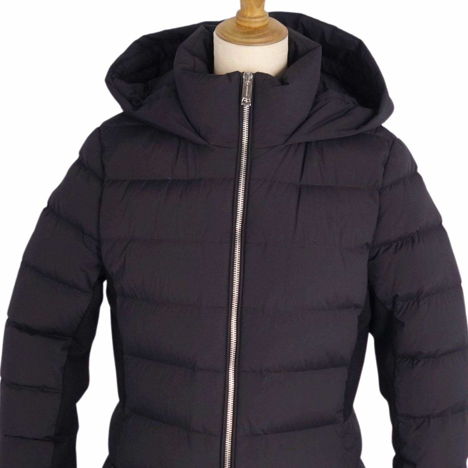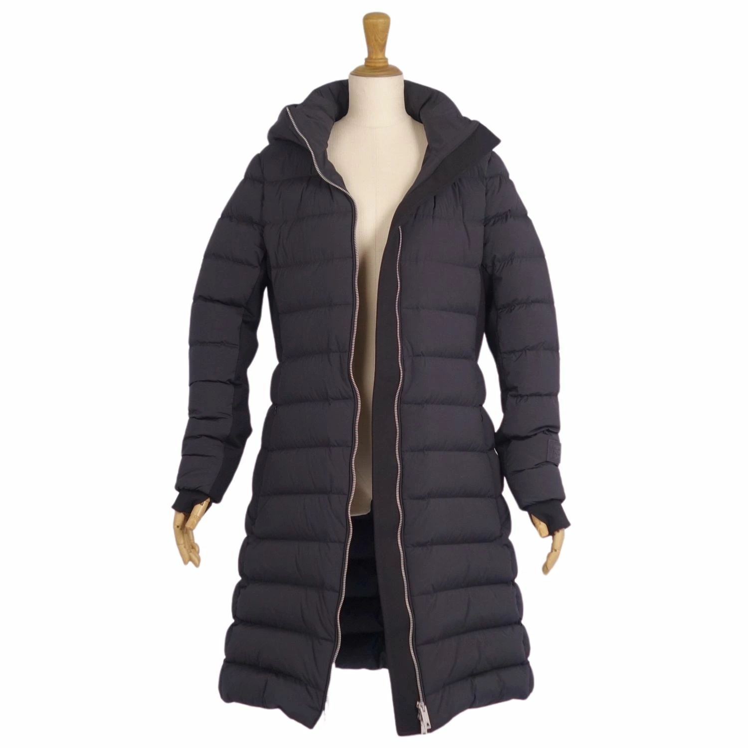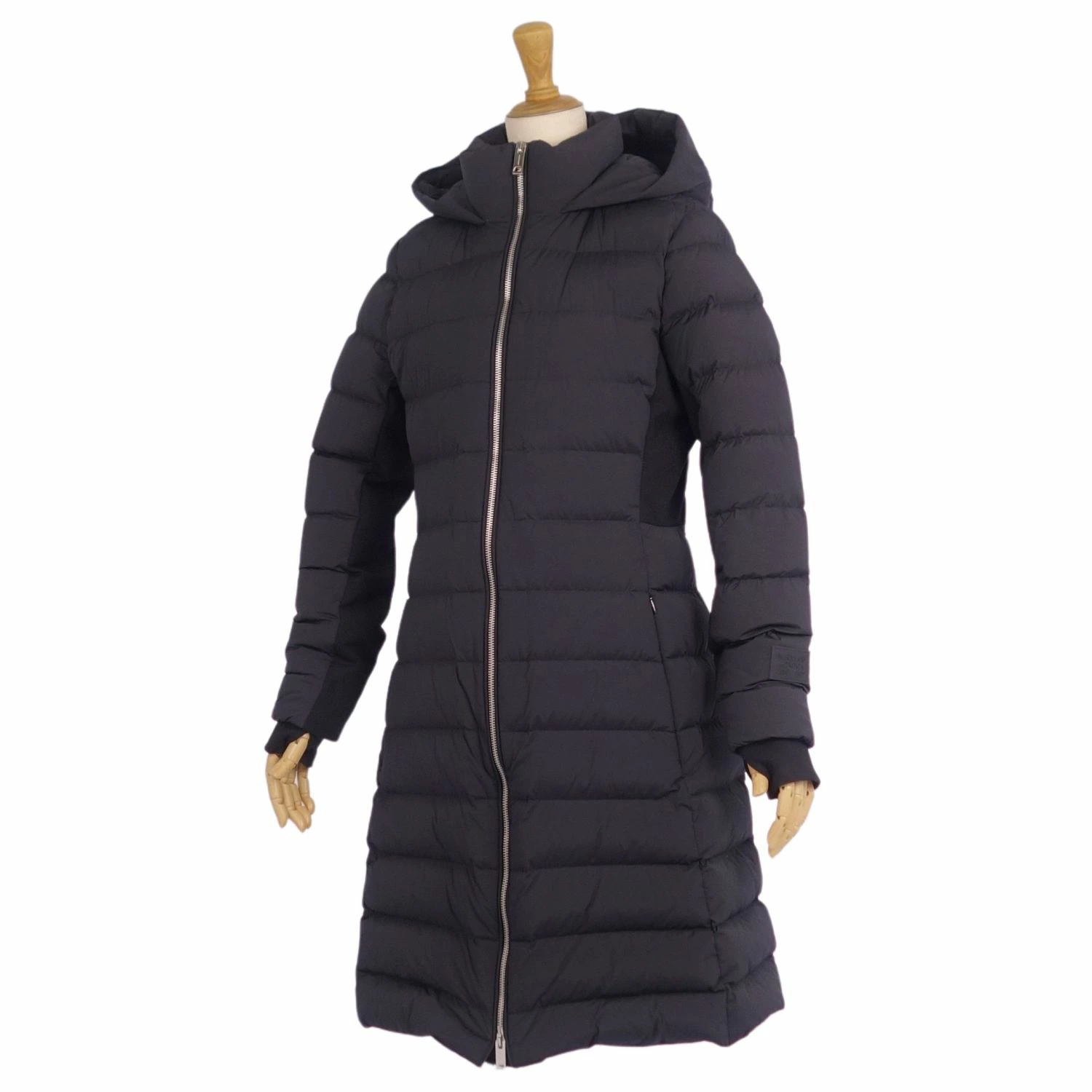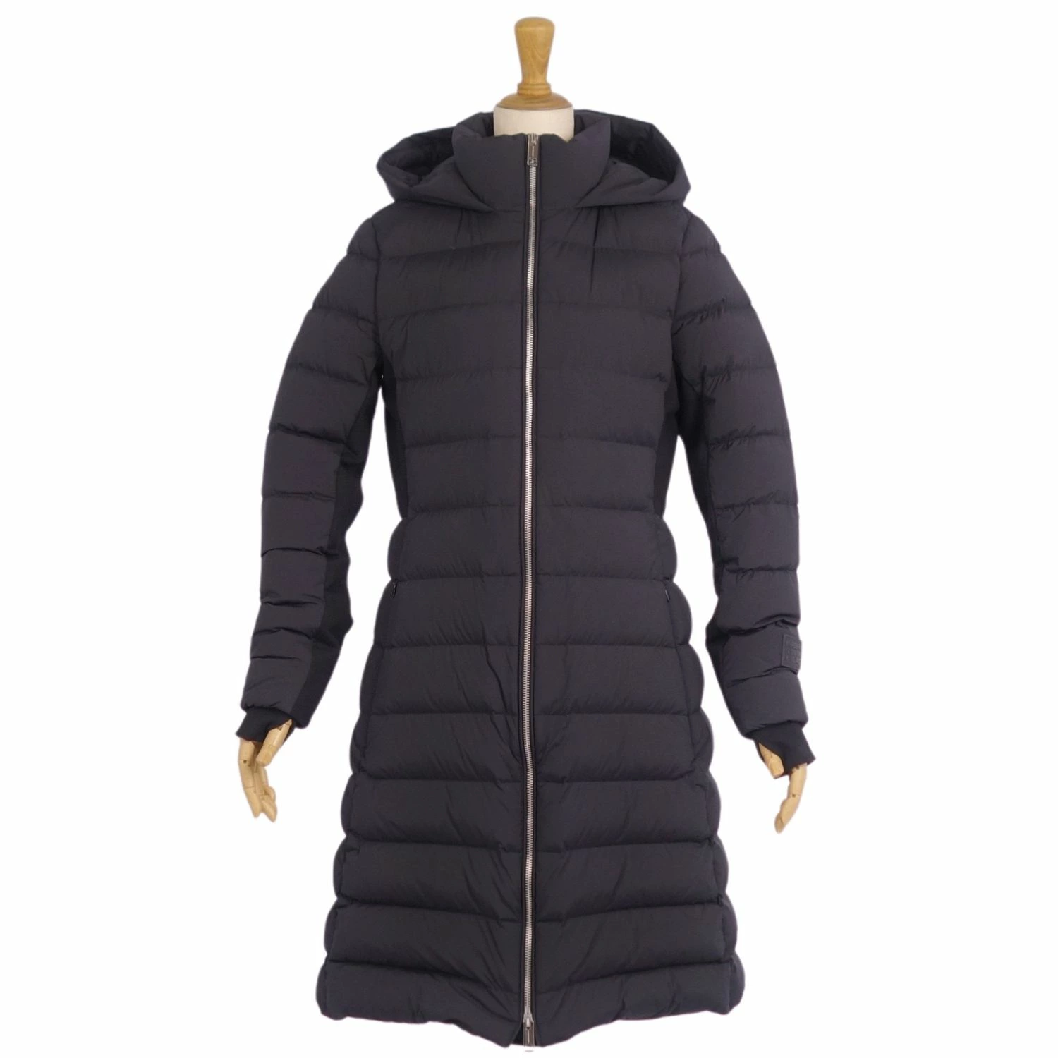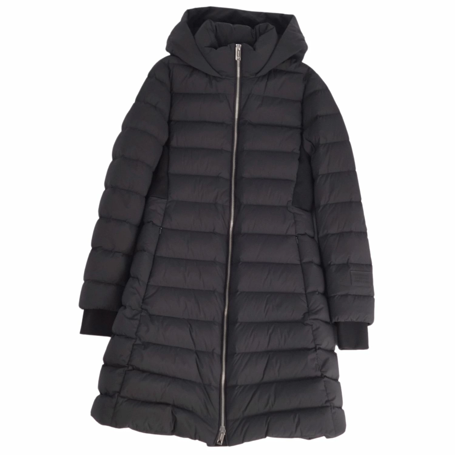 [Excellent Condition] Burberry Down Coat, Long Zip-Up Nylon Outerwear, Women's, Size Small, Black [Pre-owned]