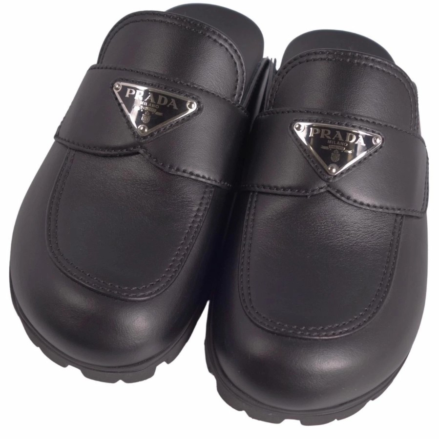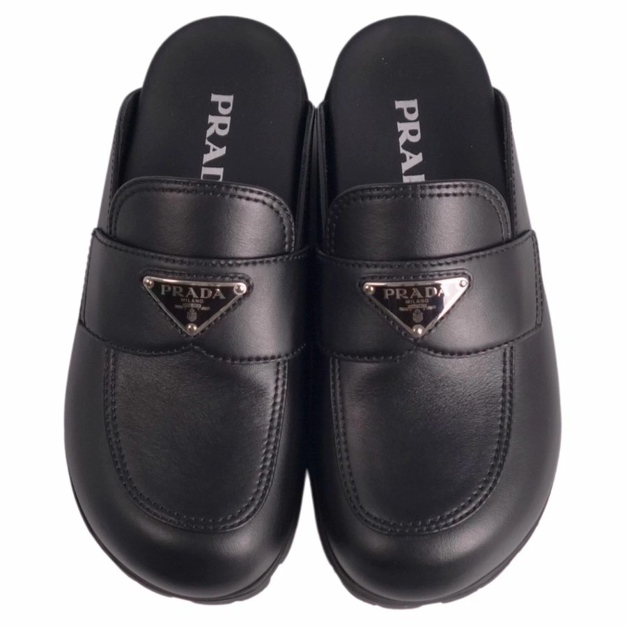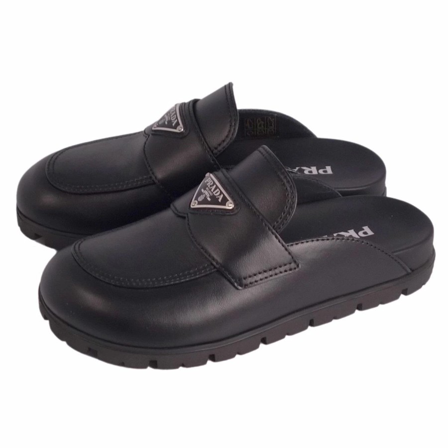 プラダ PRADA サンダル トライアングル 三角ロゴプレート レザー シューズ 靴 レディース イタリア製 ブラック サイズ35(22cm相当)