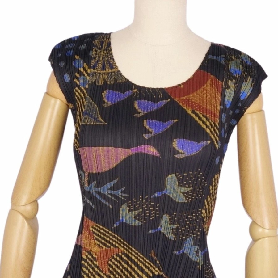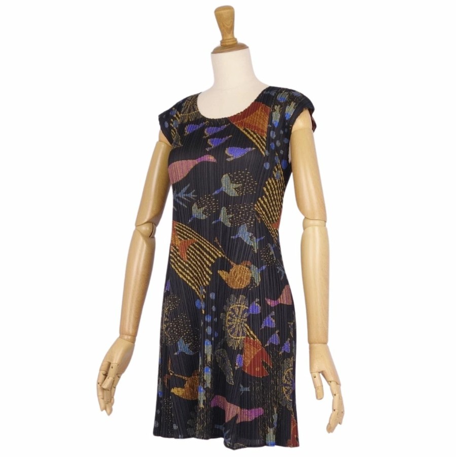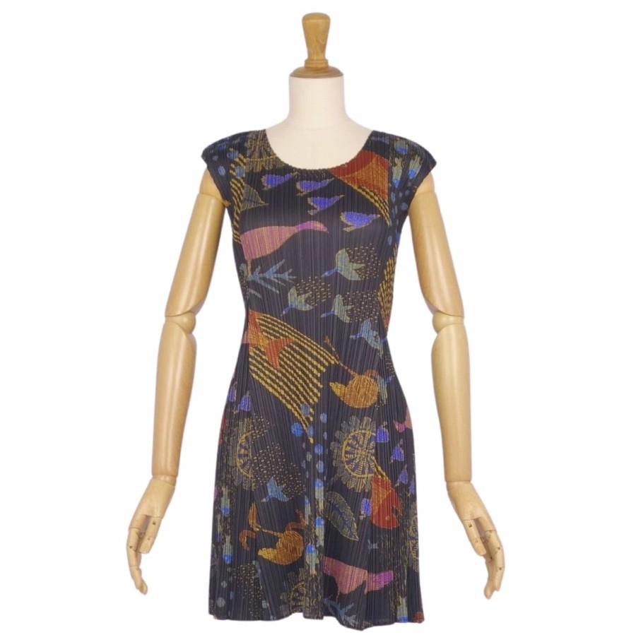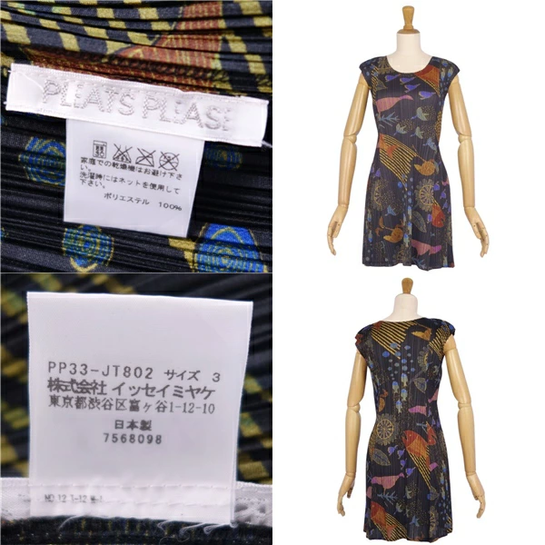 プリーツプリーズ イッセイミヤケ PLEATS PLEASE ワンピース ノースリーブ 総柄 プリーツ トップス レディース マルチカラー サイズ3(L相当)