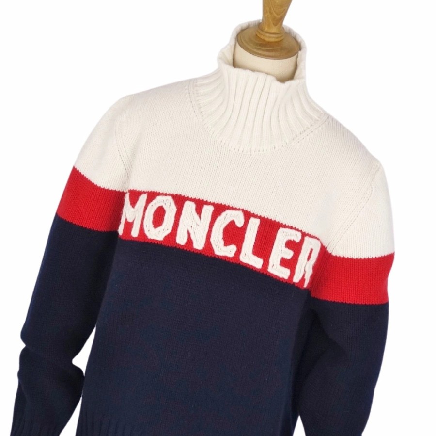 モンクレール MONCLER ニット セーター ハイネック ロングスリーブ 長袖 ミドルゲージ ウール カシミヤ トップス レディース ネイビー/ホワイト/レッド サイズL