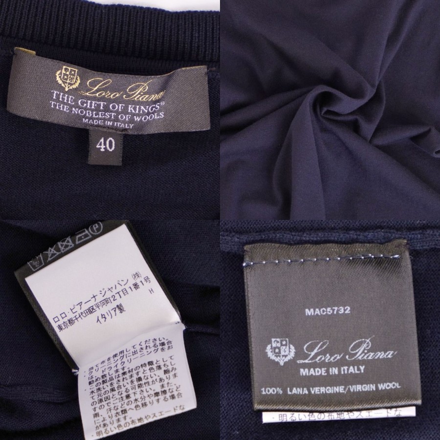 [Excellent Condition] Loro Piana THE GIFT OF KINGS THENOBLEST OF WOOL Wool Top, Women's, Made in Italy, Size 40 (Equivalent to M), Navy [Pre-owned]