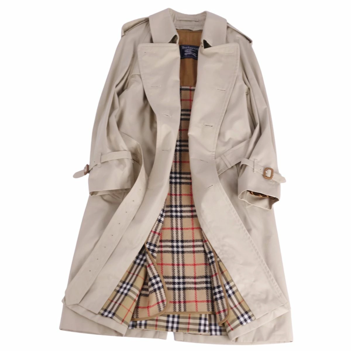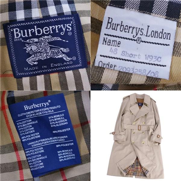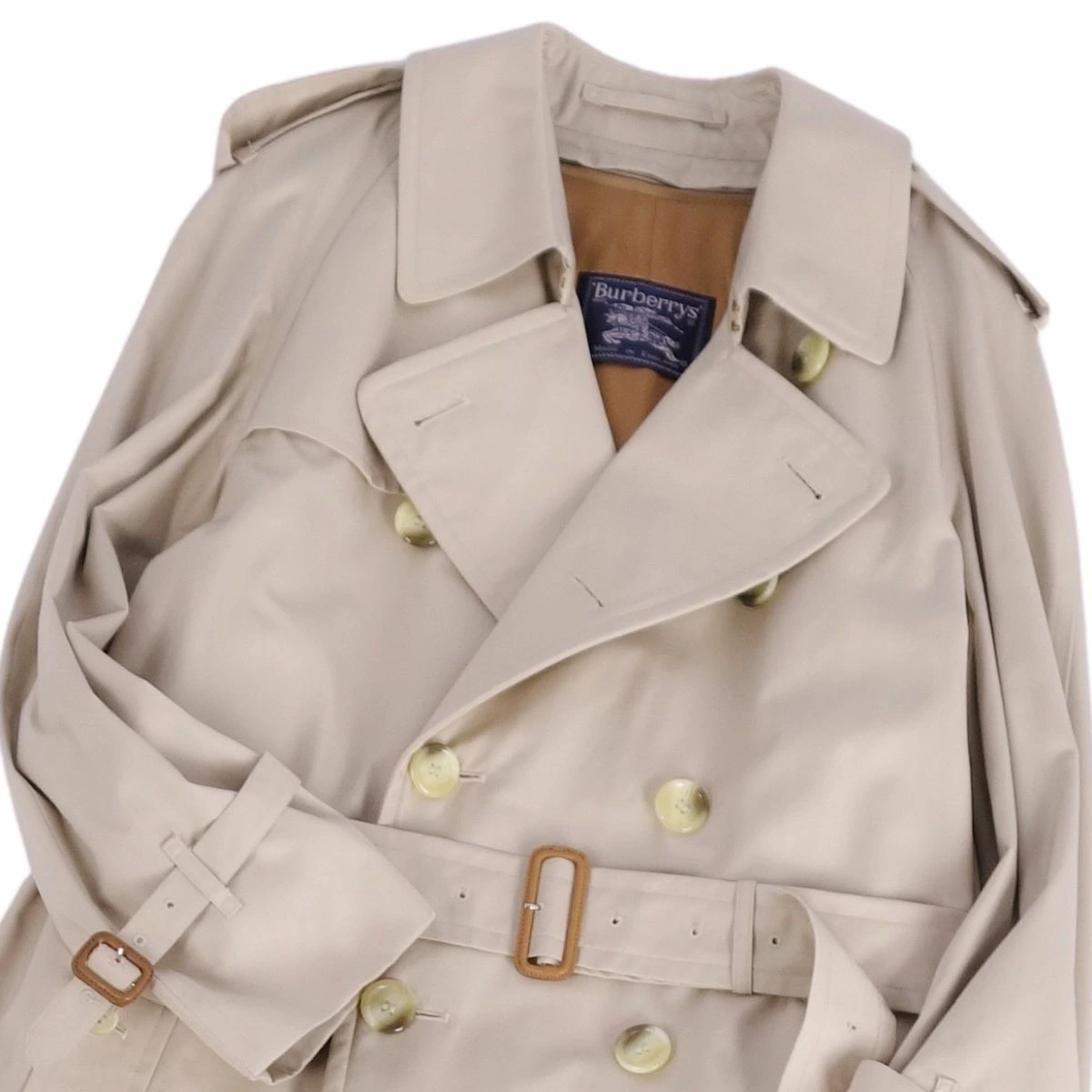 ■商品名Vintage バーバリー Burberrys コート トレンチコート ライナー付き 裏チェック 英国製 アウター メンズ ベージュ サイズ48SHORT(M相当)■状態説明・希少かつ絶大な人気を誇る1990年代頃のVintage Burberrys、クラシカルで美しいシルエットが魅力的な王道トレンチコートです♪・表地はコットンギャバジン、裏地はアイコニックなチェックデザイン、肩パットなしで美しいショルダーラインです◎・イングランド製・USEDですが使用感も少なく生地のハリ感も残っておりヴィンテージの中でもとてもキレイな状態です!【季節感:秋冬春】【付属品:ベルト/ライナー】■素材本体 表地:コットン51% ポリエステル49% 裏地:ポリエステル50% コットン50% ライナー:ウール100%■カラーベージュ■表記サイズ48SHORT(M相当)■実寸サイズ着丈:約111cm身幅:約58cmゆき丈:約86.5cm袖丈(脇下から):約45cm肩幅(エポレット~エポレット):約50cm■状態ランクSA 使用感のほぼ無いとてもキレイなUSED品■店舗管理番号ce07mt-rm20f13406mens_beige mens_m