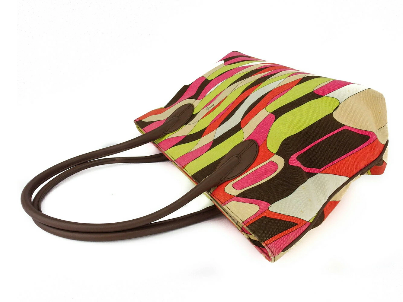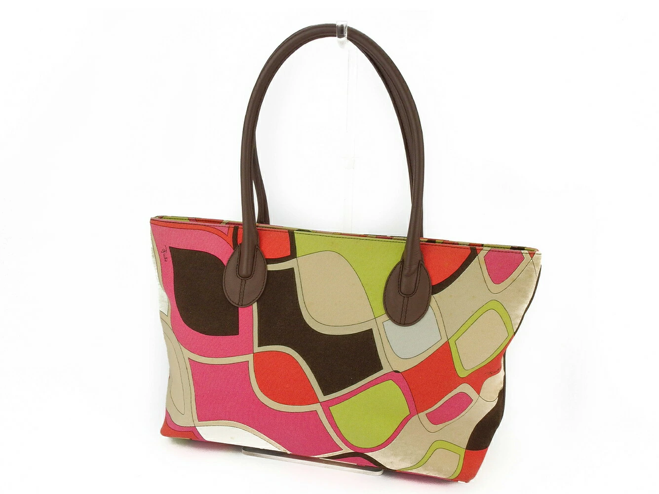 [Rakuten Super Sale ★ Up to 50% Off] Emilio Pucci Tote Bag in Pink, Brown, and Beige. Men's. Pre-owned. High-end vintage brand.