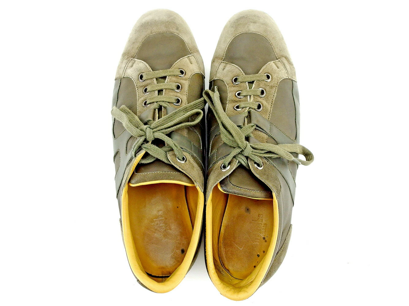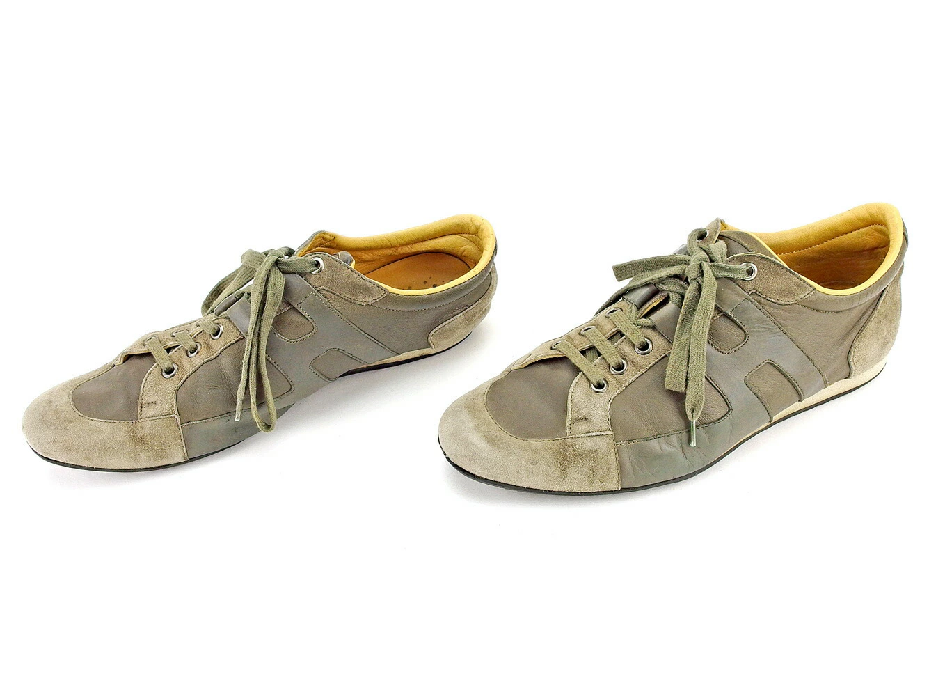 [Rakuten Super Sale ★ Up to 50% Off] Hermès #41 Low-Top Sneakers with H Mark, Gray, Green, and Silver, Women's, Pre-Owned, High-End, Vintage