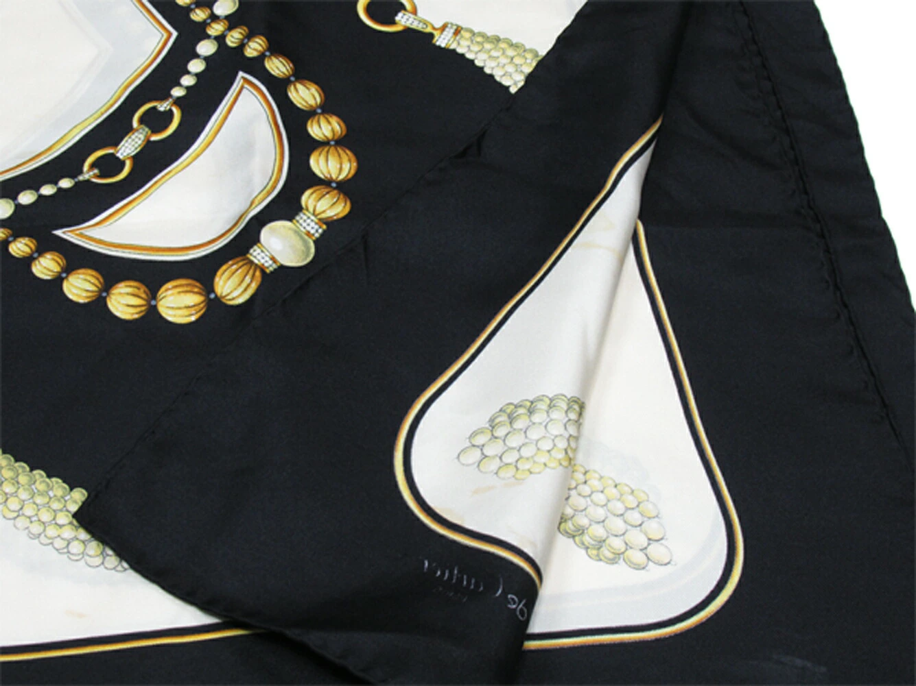 [Rakuten Super Sale ★ Up to 50% Off] Cartier Scarf, Print Pattern, Black and Beige, Women's, Pre-owned, CARTIER, High-End Brand, Vintage