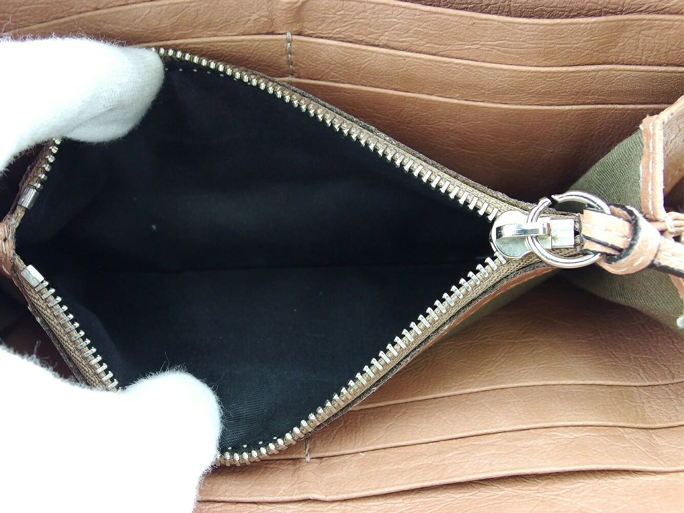 | コンディション | 全体の状態詳細:まだまだお使いいただけます。内側ファスナー重め。その他 スレ&汚れ(内側&札入れ&小銭入れ&カード入れ&ポケットもあり) 角スレ 金具ハゲ 破れ1.5cm程(内側横マチ) コーティングヒビ割れ(ファスナープル&内側横マチ) などの使用感があります。 |