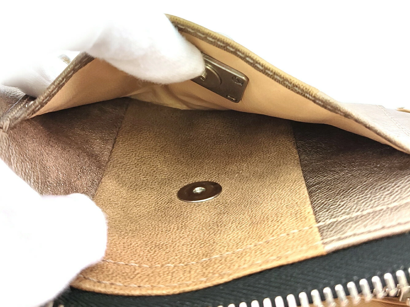 コンディション全体の状態詳細:大きなダメージも無く、比較的良いコンディションです。スレ&汚れ(札入れ&小銭入れ&カード入れ&ポケットもあり) シミ(小銭入れ) 金具クスミ・傷 などの一般的使用感があります。