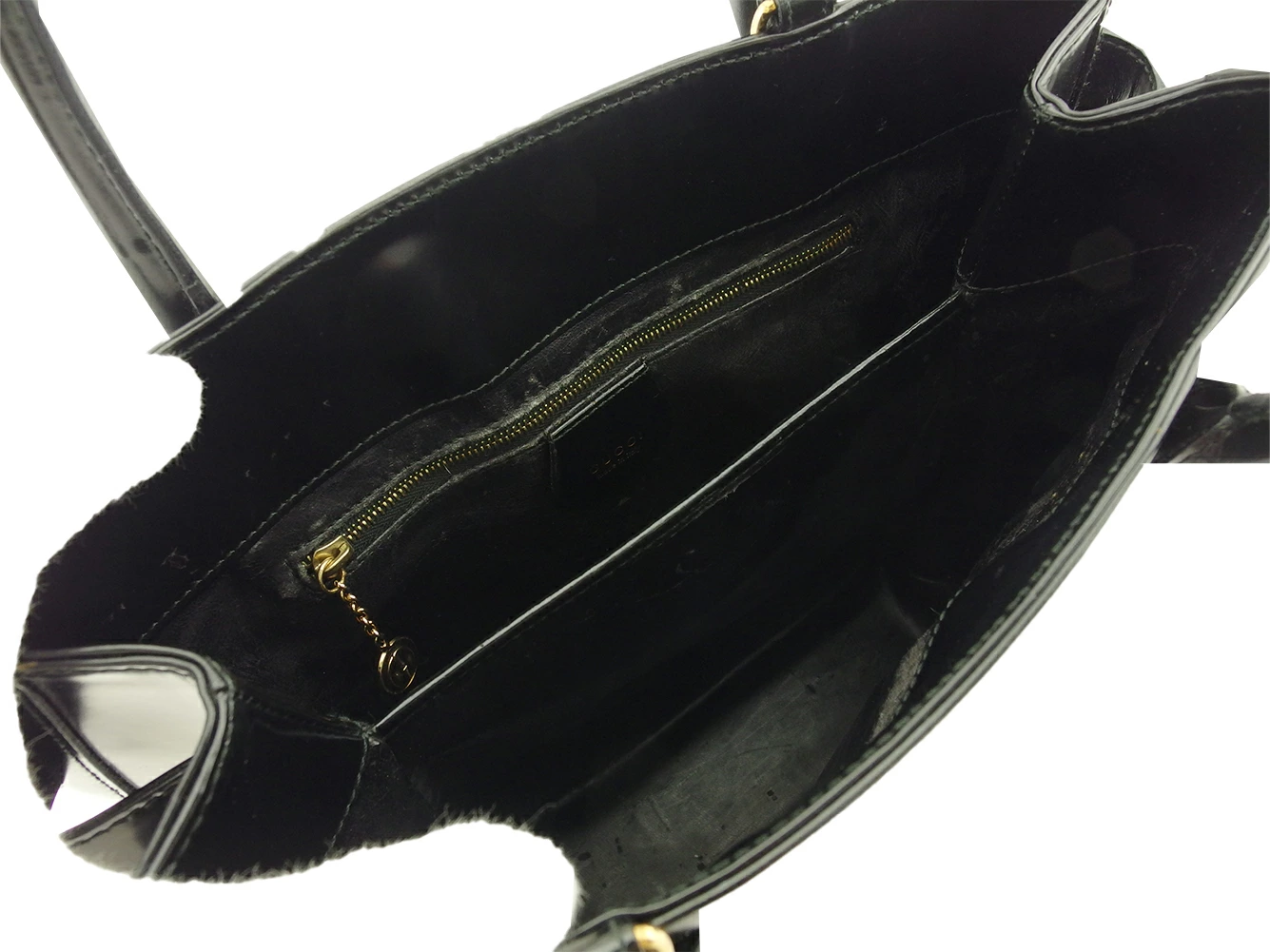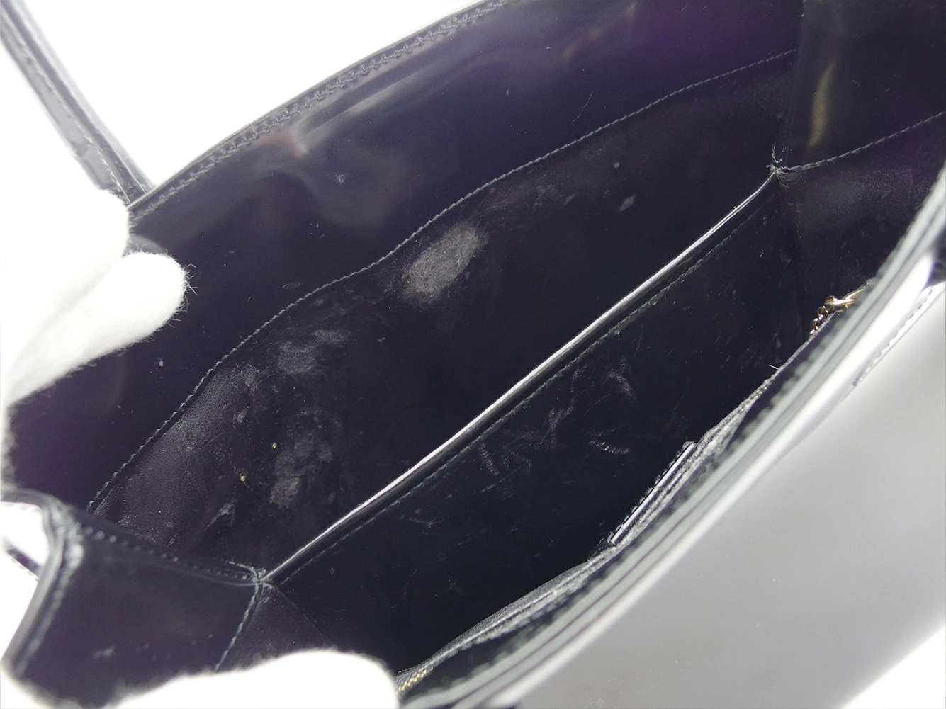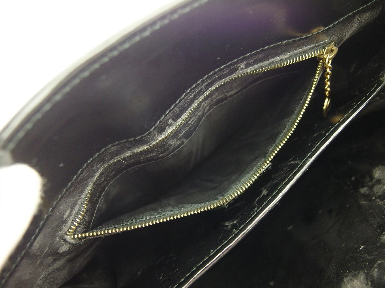 内側:内張レザー(ハガレ、汚れ、傷、ベタつき箇所)、ファスナーポケット(開閉口周辺に汚れ&傷、スレ)あり。