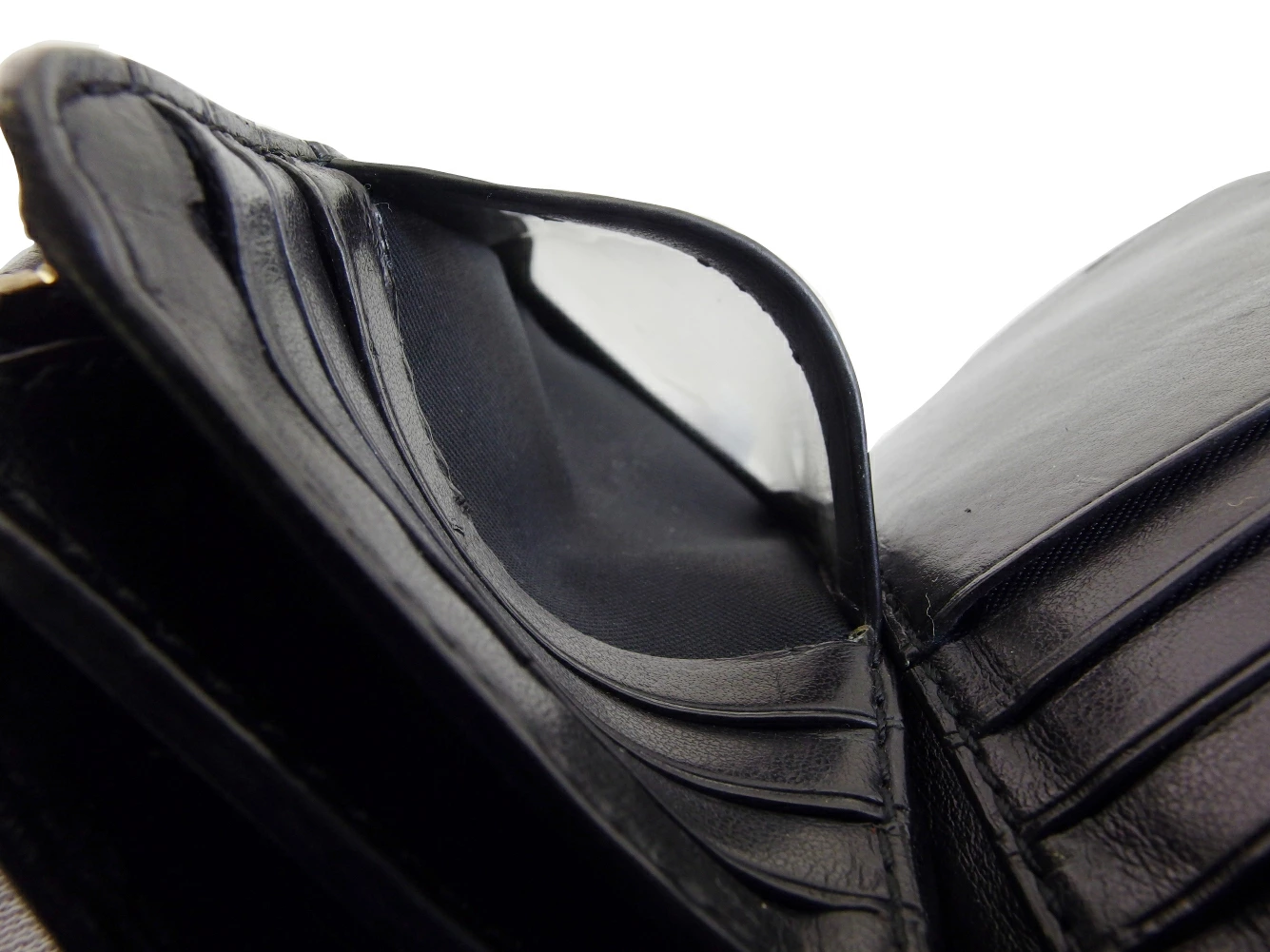 | コンディション | 全体の状態詳細:コバ部分などに使用感がございますが、まだまだご使用いただけます。社外リペア跡(コバの傷み部分の補修、内側センター部分のレザーの傷み補修)あり。外側:レザー(コバに補修跡、若干の反り)、ロゴプレート(傷、メッキハゲ)、小銭入れ(内側に若干の汚れ)あり。内側:レザー(傷、形状後、センター部分のコバに補修跡&レザー傷み&切れ箇所)、窓付きカードケース(汚れ、傷)あり。この他、中古品のため 目立たない傷 汚れ などの一般的使用感がある場合がこざいます。ご了承ください。 |