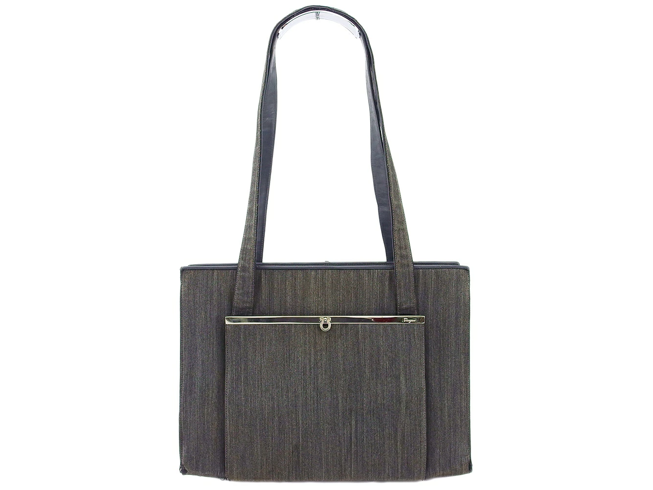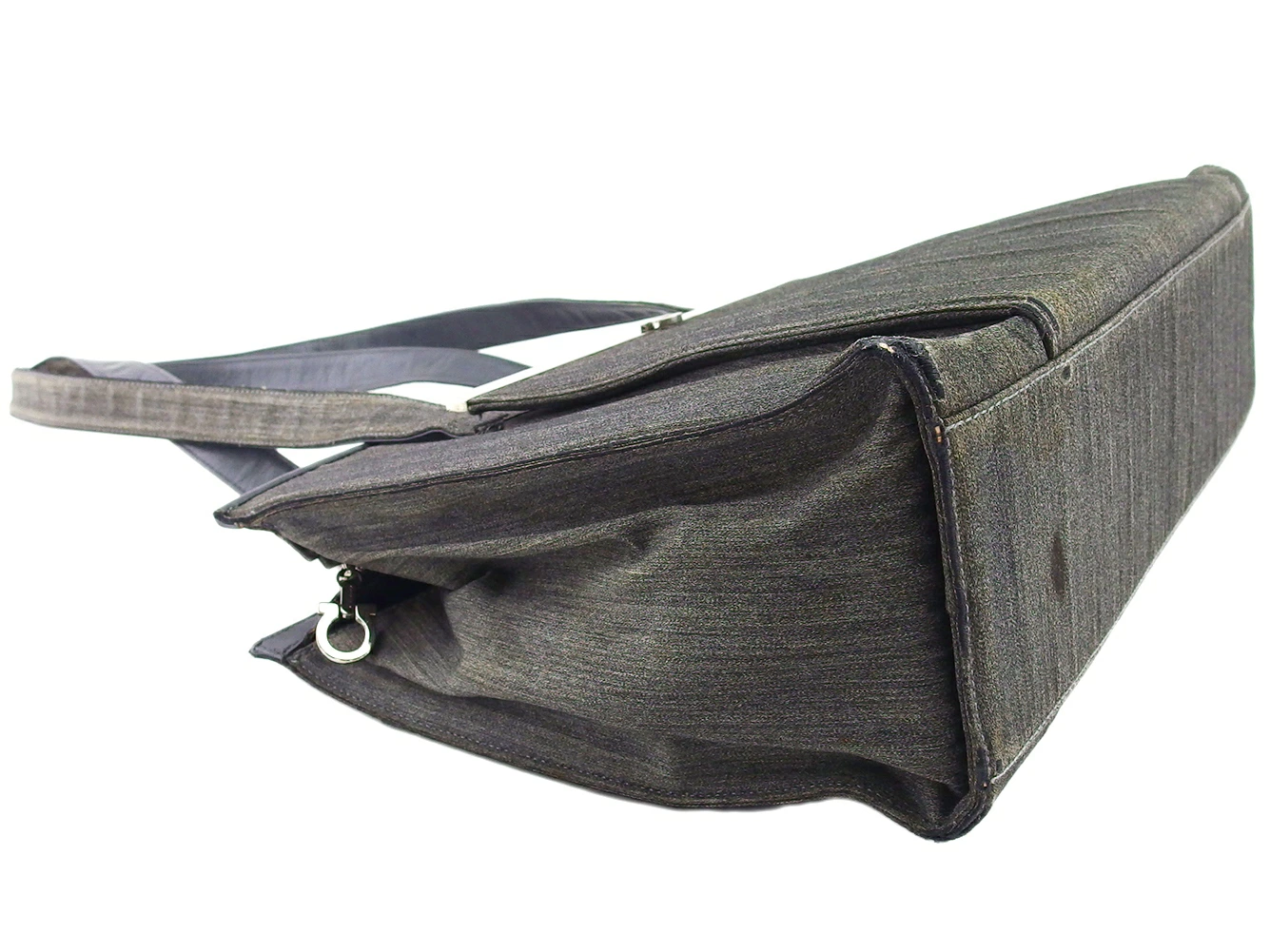 [Rakuten Super Sale ★ Up to 50% Off] Salvatore Ferragamo Gancini Shoulder Bag in Gray, Black, and Silver. Pre-owned. Vintage Salvatore Ferragamo luxury brand.