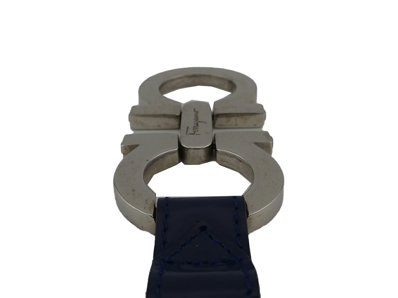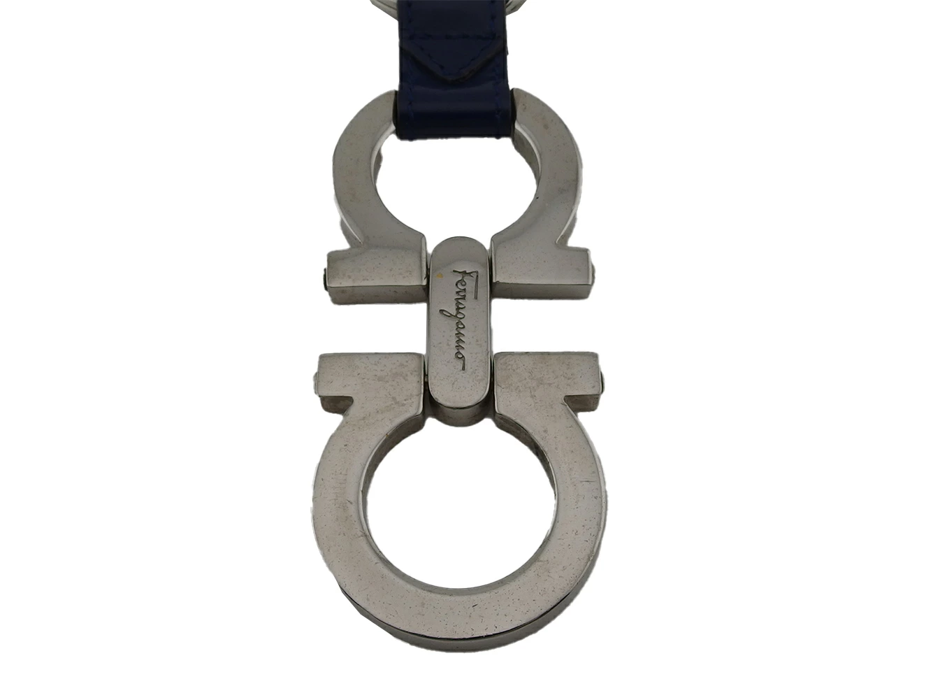 [Rakuten Super Sale ★ Up to 50% Off] Salvatore Ferragamo Gancini Key Ring in Silver and Navy. Pre-owned, High-End Vintage.
