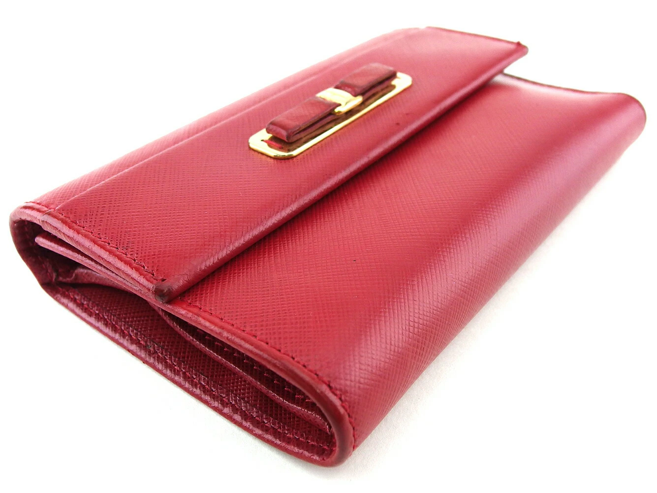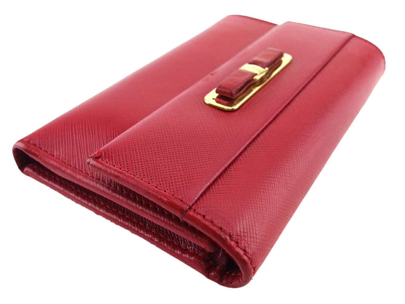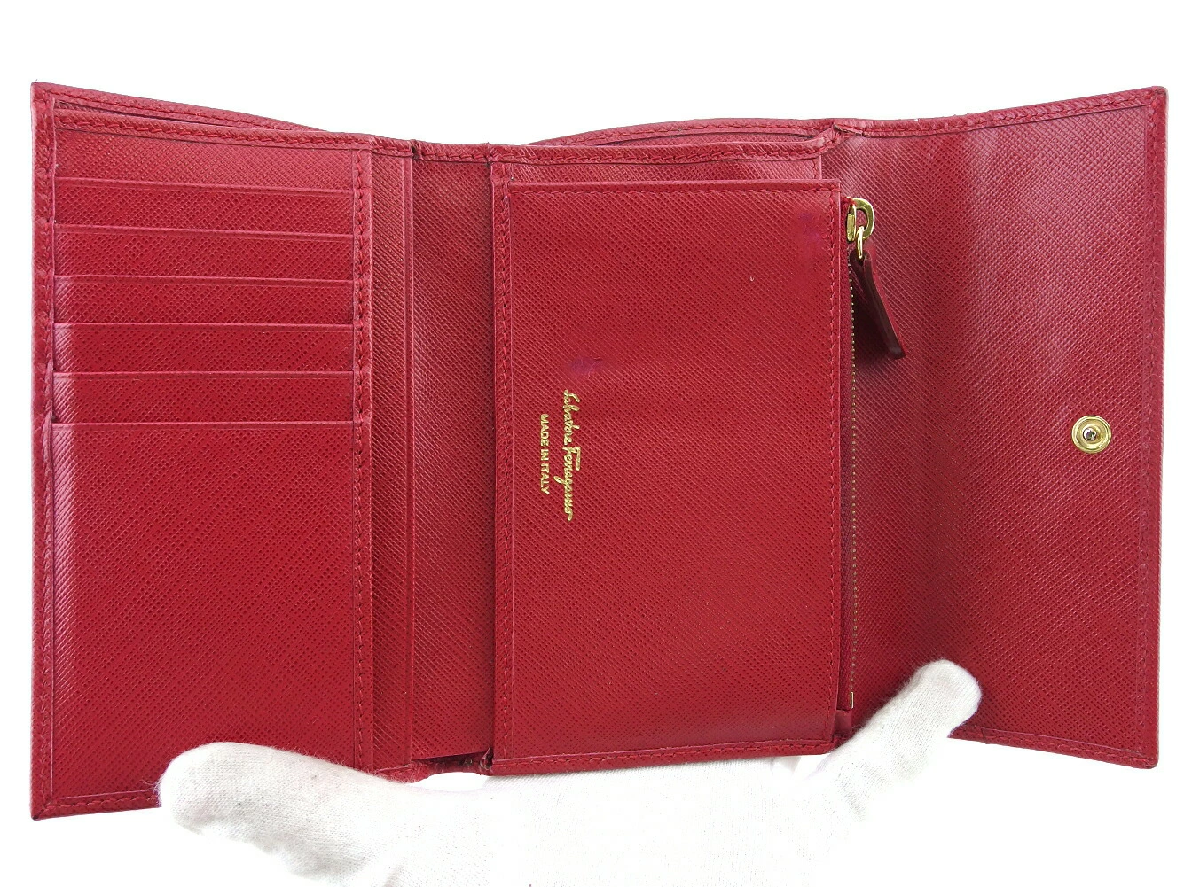 [Rakuten Super Sale ★ Up to 50% Off] Salvatore Ferragamo Tri-fold Wallet in Vara Ribbon, Red and Gold, Men's, Pre-owned, High-End, Vintage