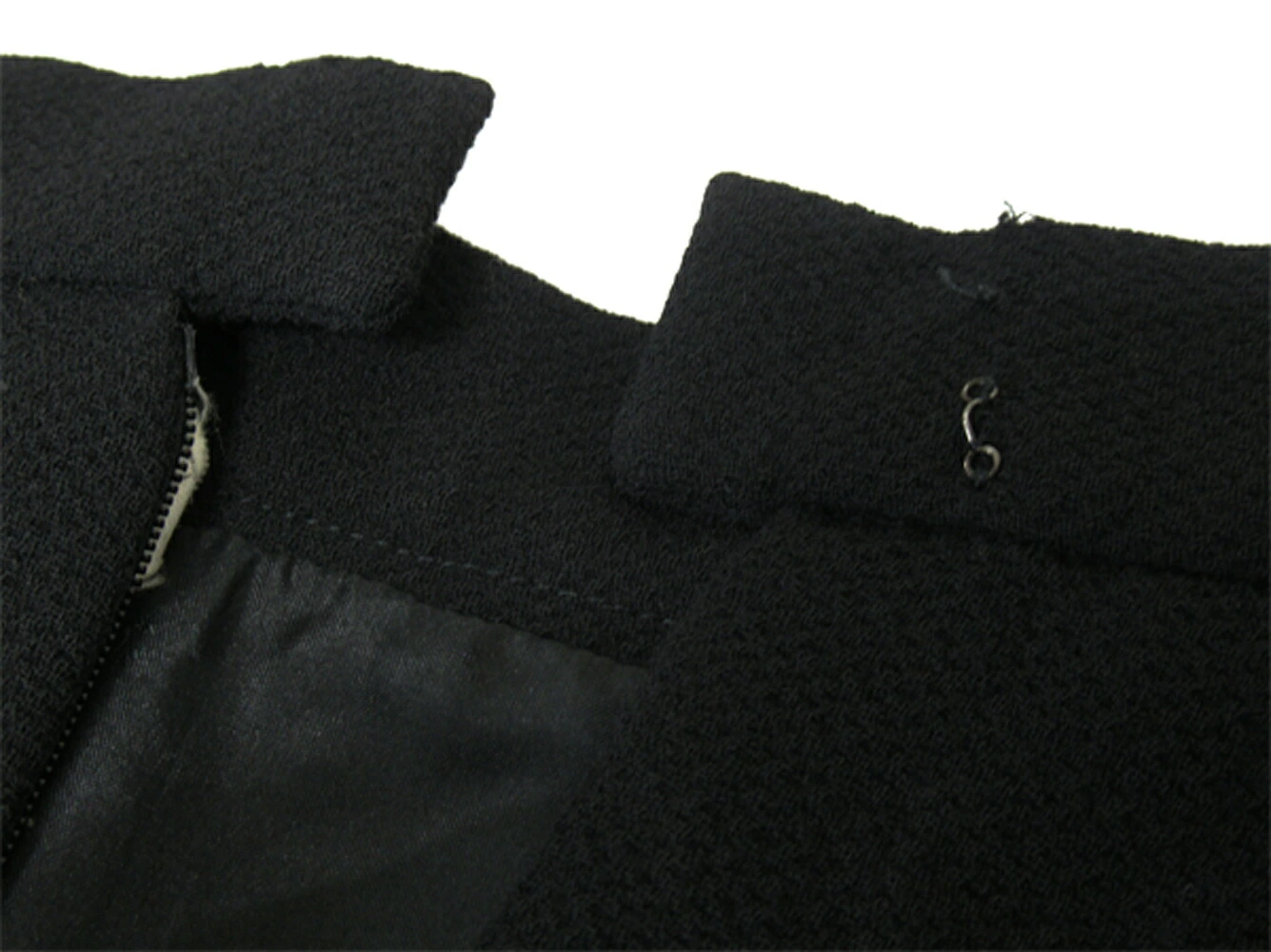 コンディション全体の状態詳細:まだまだお使いいただけます。素材不明(表記不鮮明)。ウエストフック留めパーツ1ヵ所取れあり。その他 スレ&汚れ(裏もあり) 破れ(スリット上裏地&裏タグ付け根) 縫い目開き(裏地) などの使用感があります。