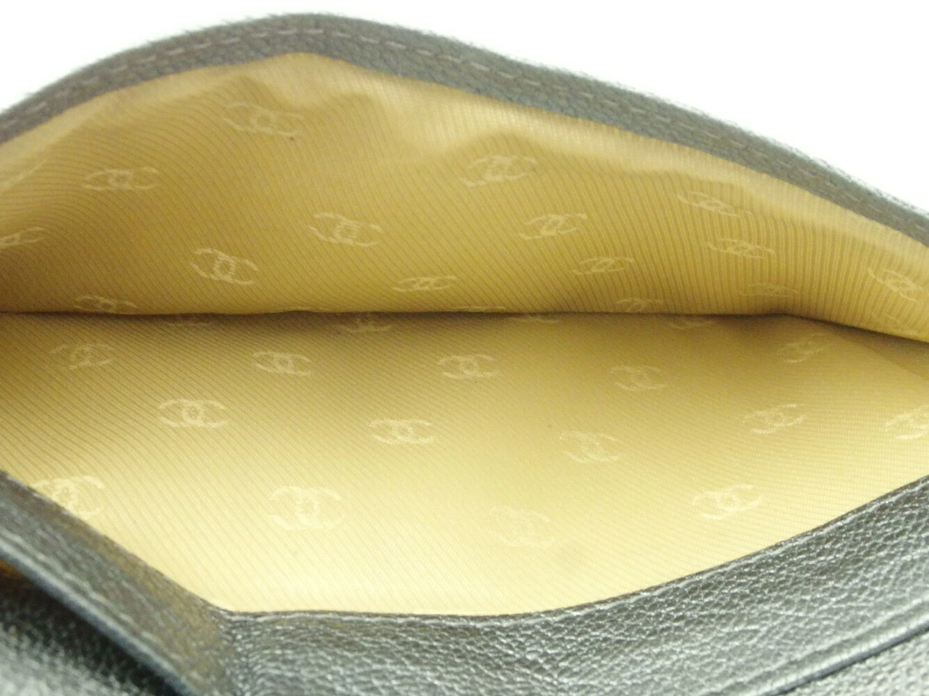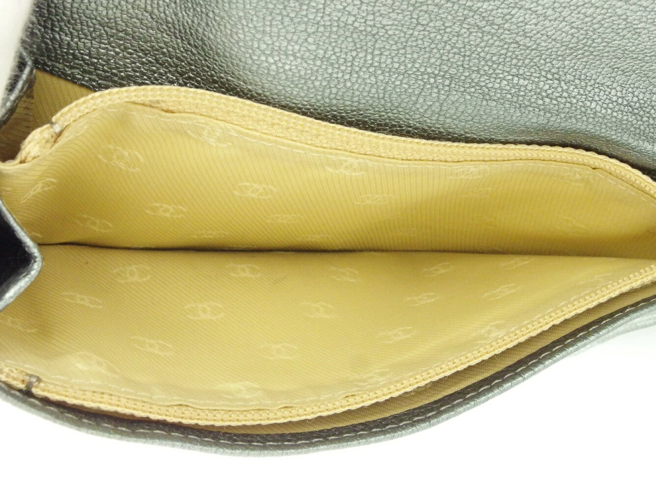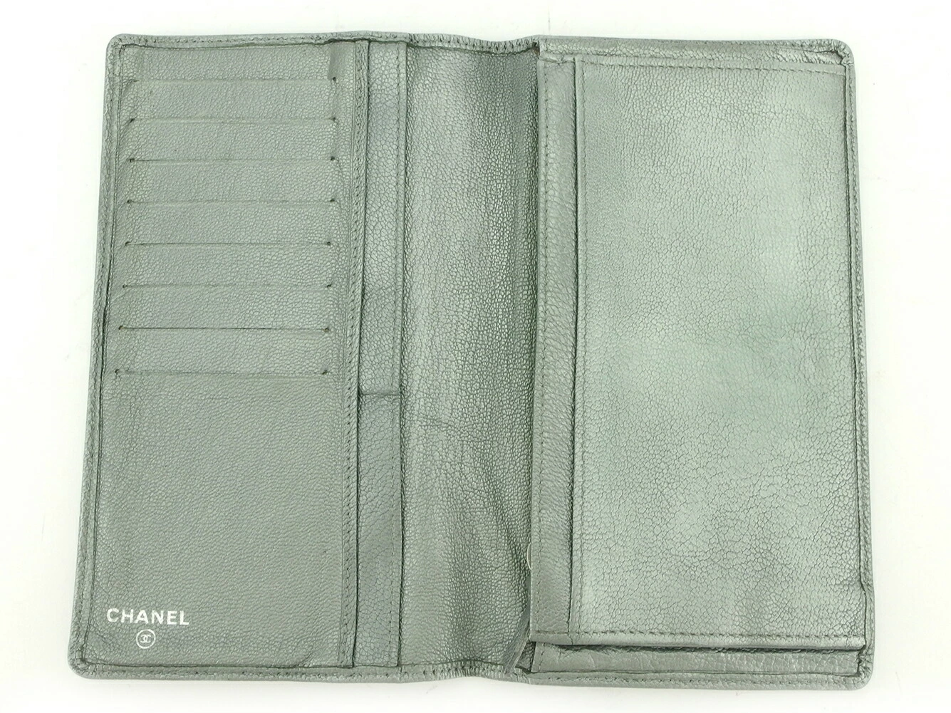 [Rakuten Super Sale ★ Up to 50% Off] Chanel Long Wallet with Coco Buttons in Metallic Gray and Silver, Pre-Owned, Vintage, High-End Brand