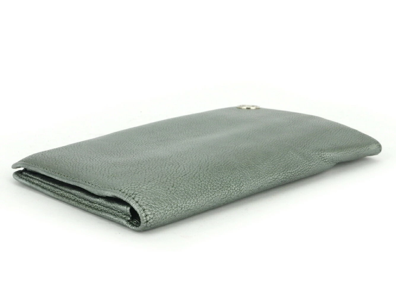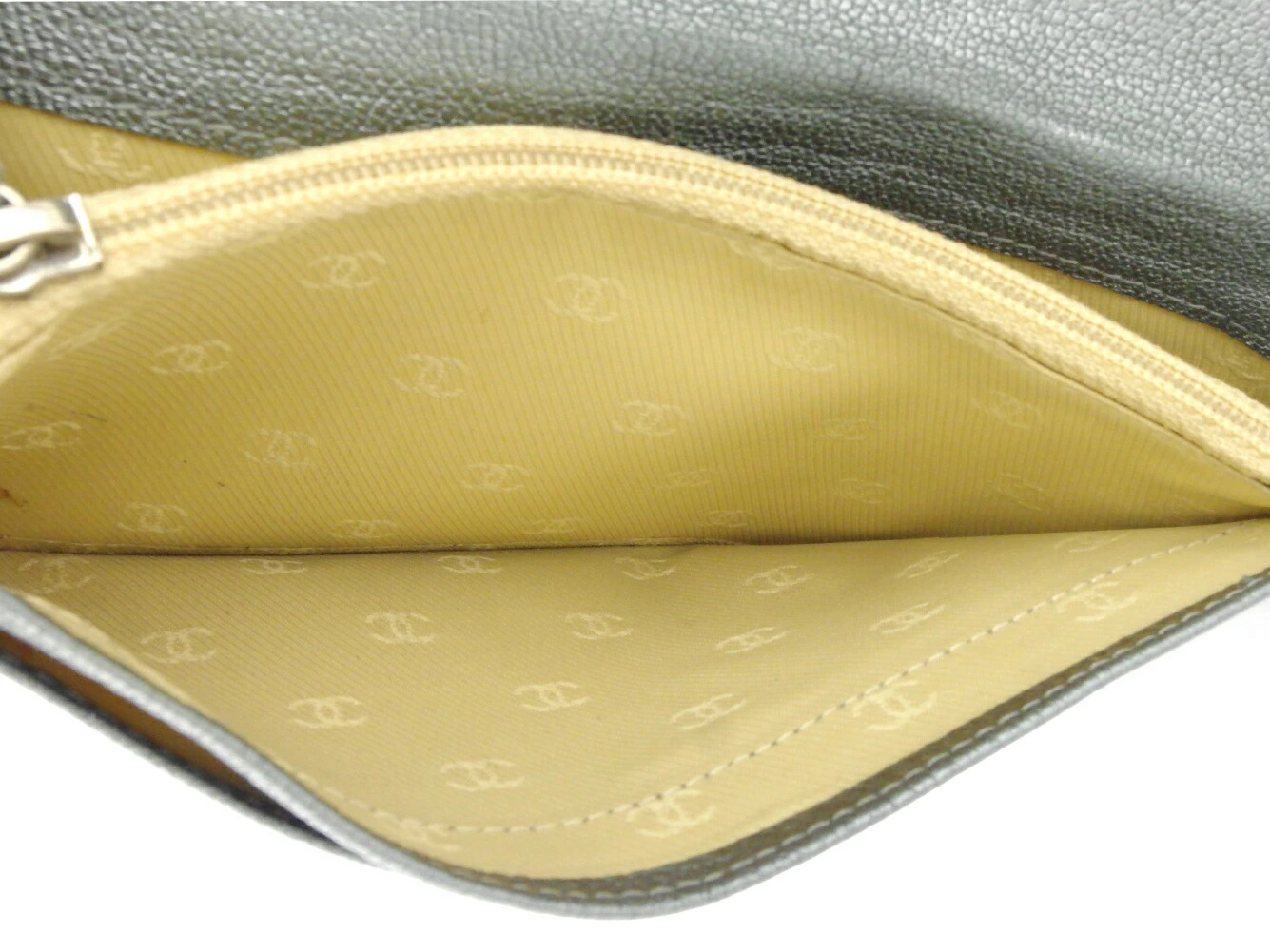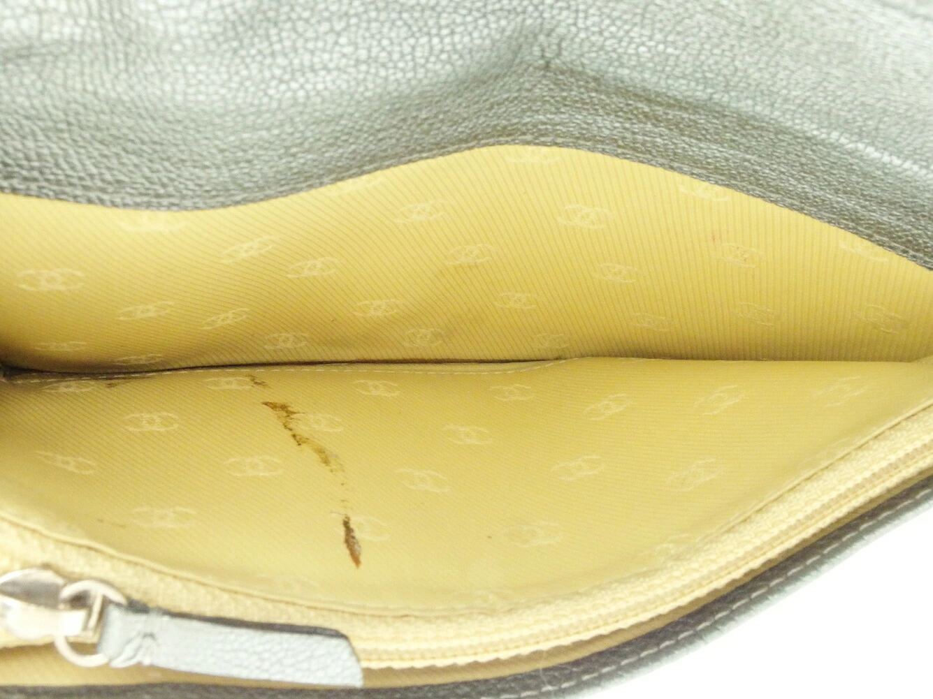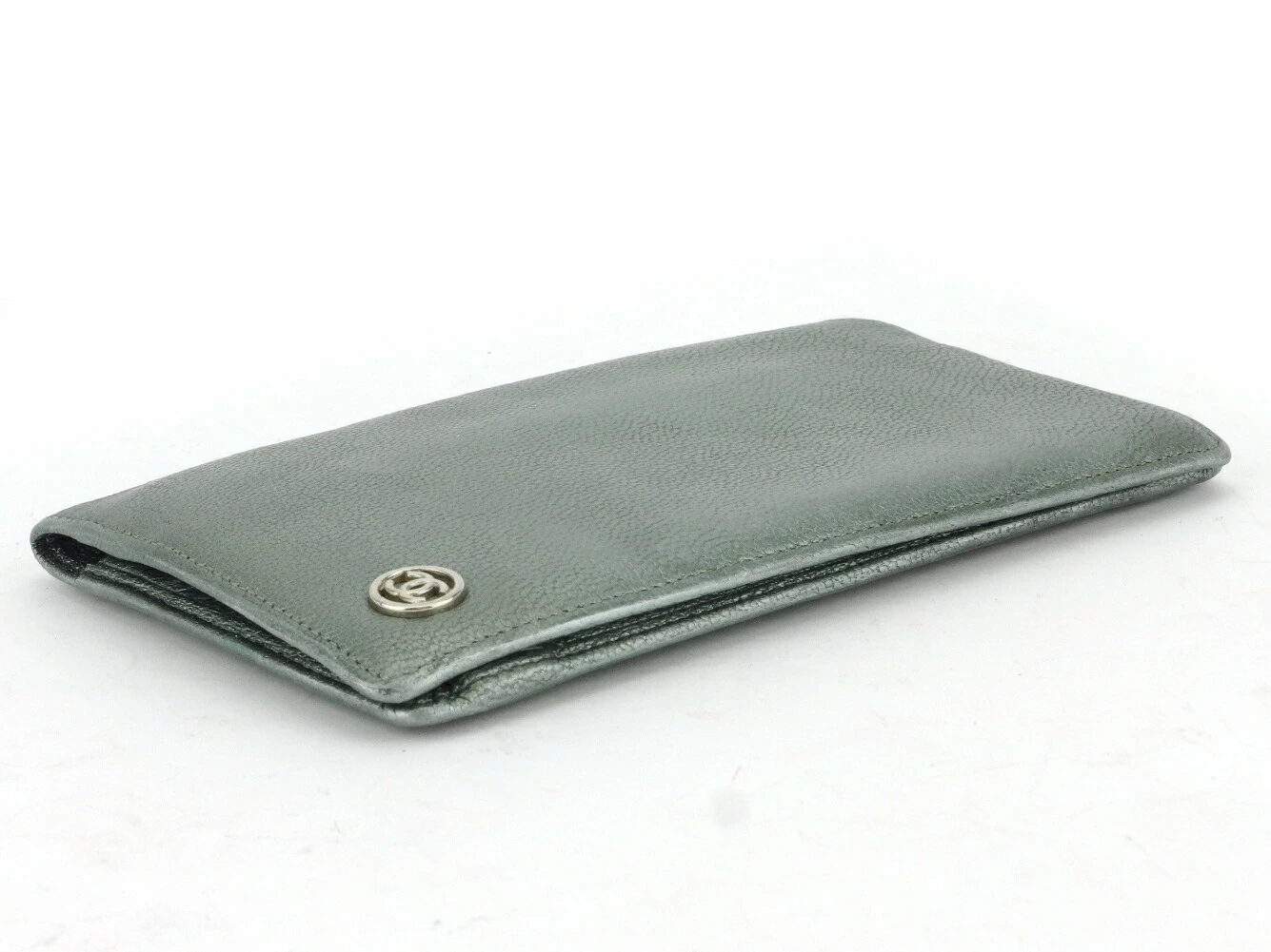 [Rakuten Super Sale ★ Up to 50% Off] Chanel Long Wallet with Coco Buttons in Metallic Gray and Silver, Pre-Owned, Vintage, High-End Brand