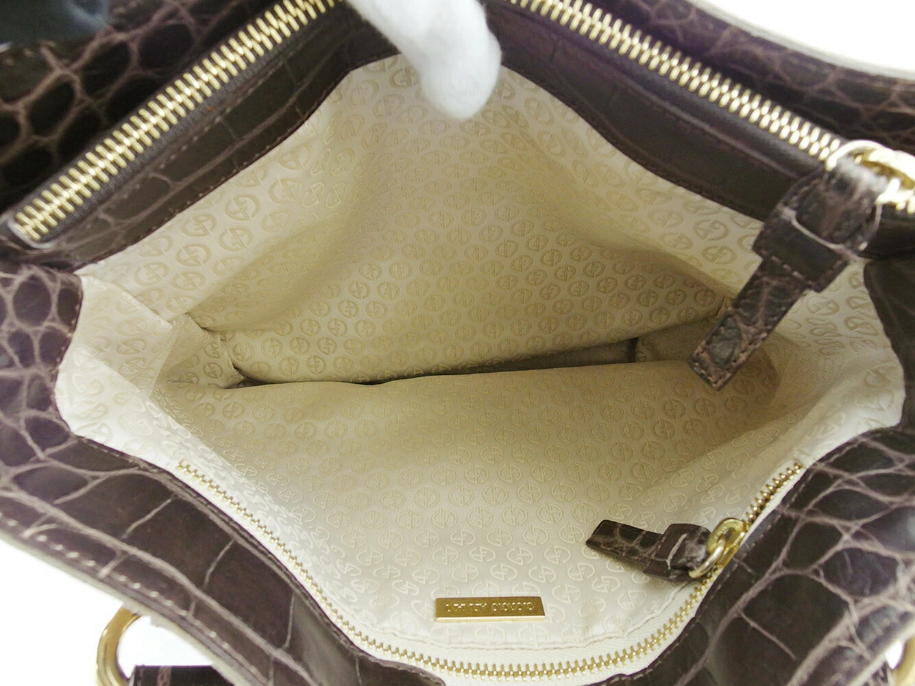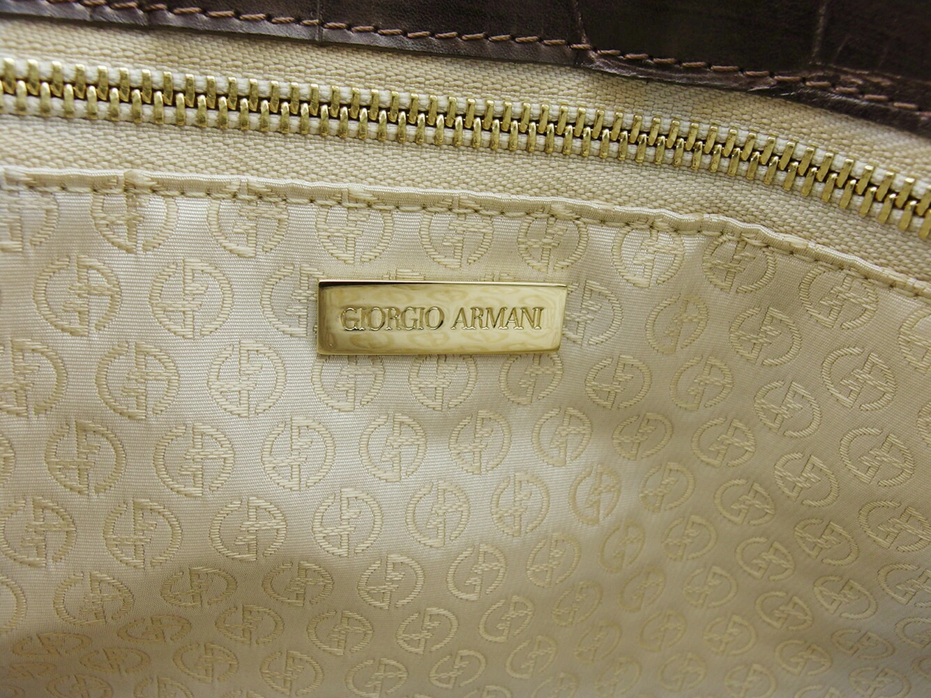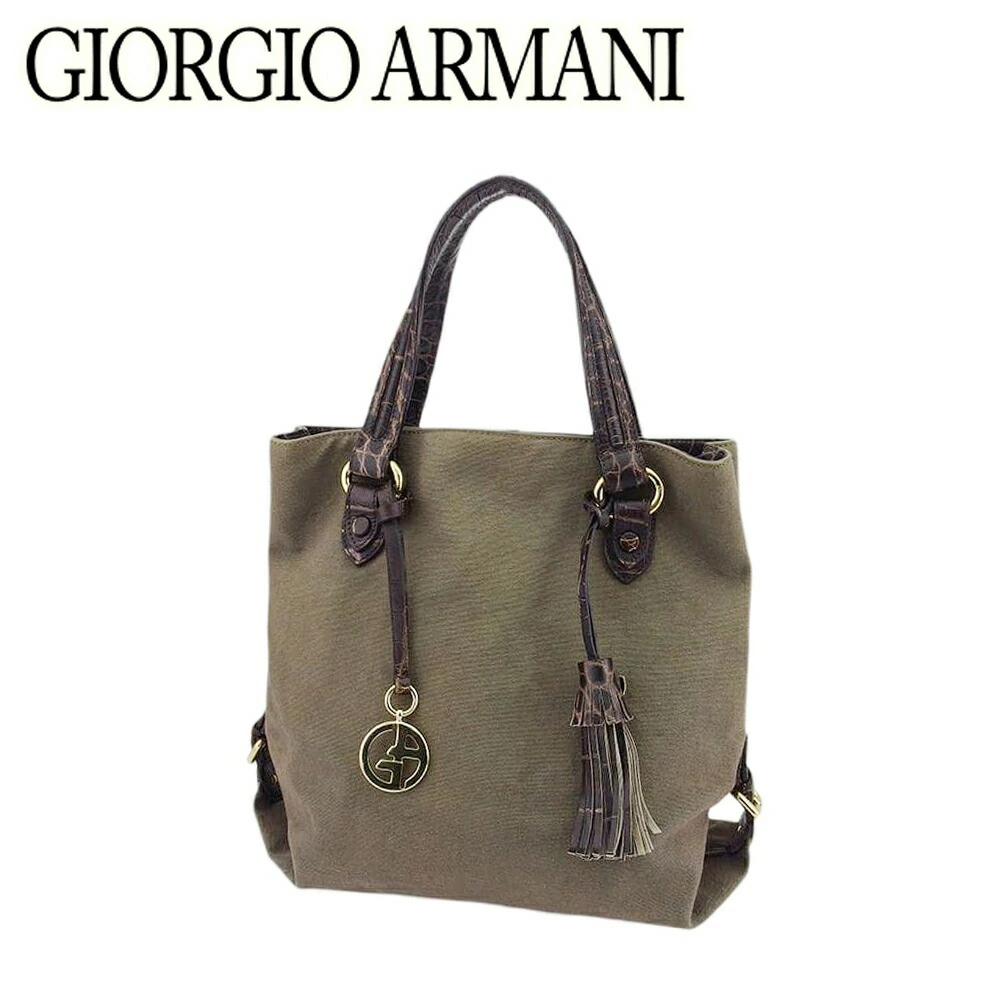 [Rakuten Super Sale ★ Up to 50% Off] Giorgio Armani Tote Bag, Crocodile-Embossed, Brown and Gold with Tassel, Men's, Pre-Owned, High-End, Vintage