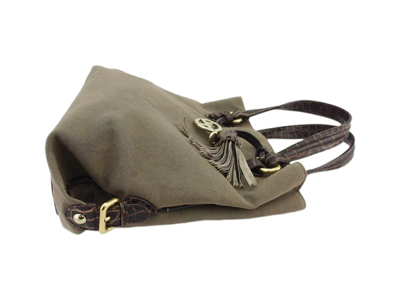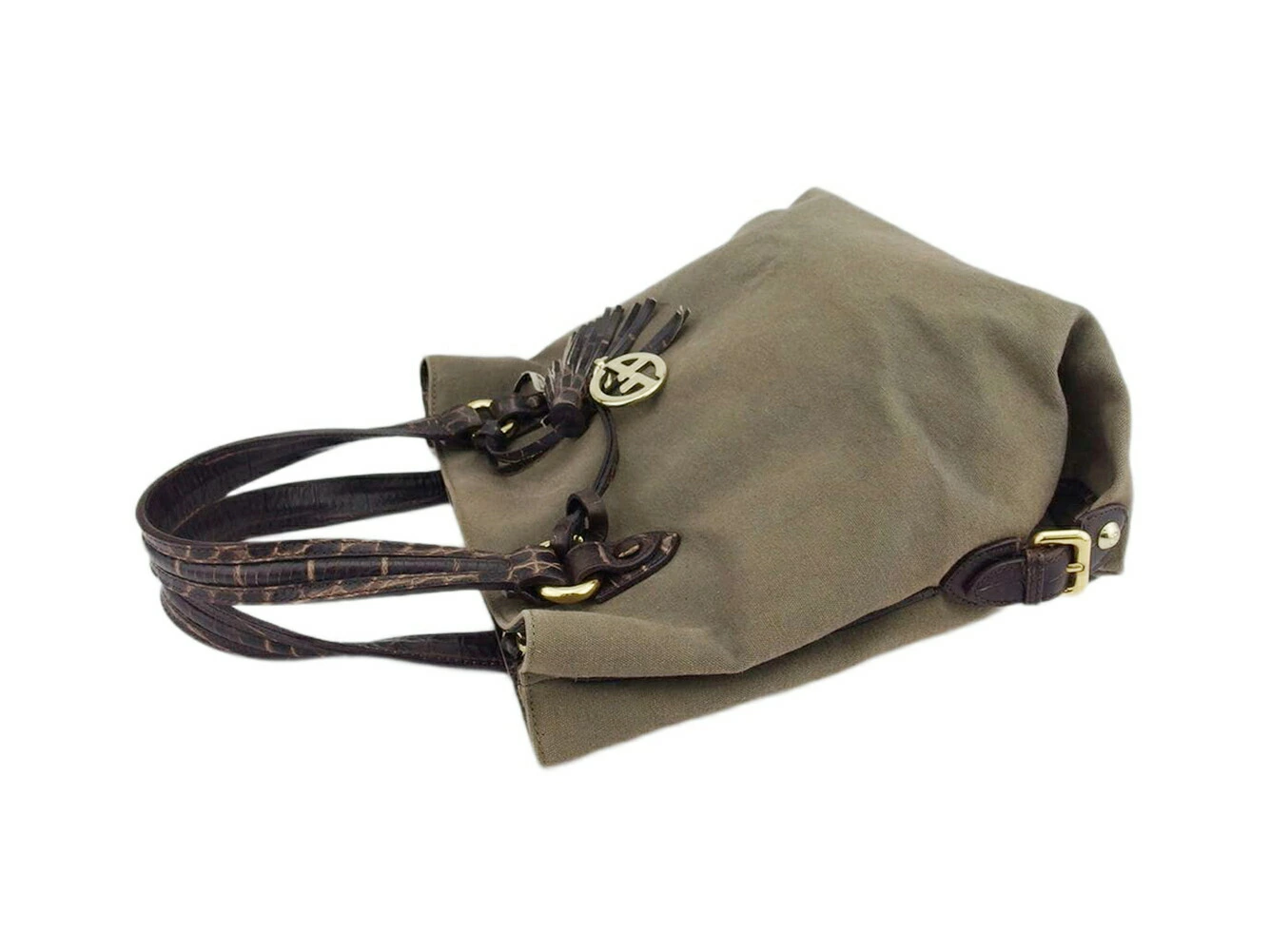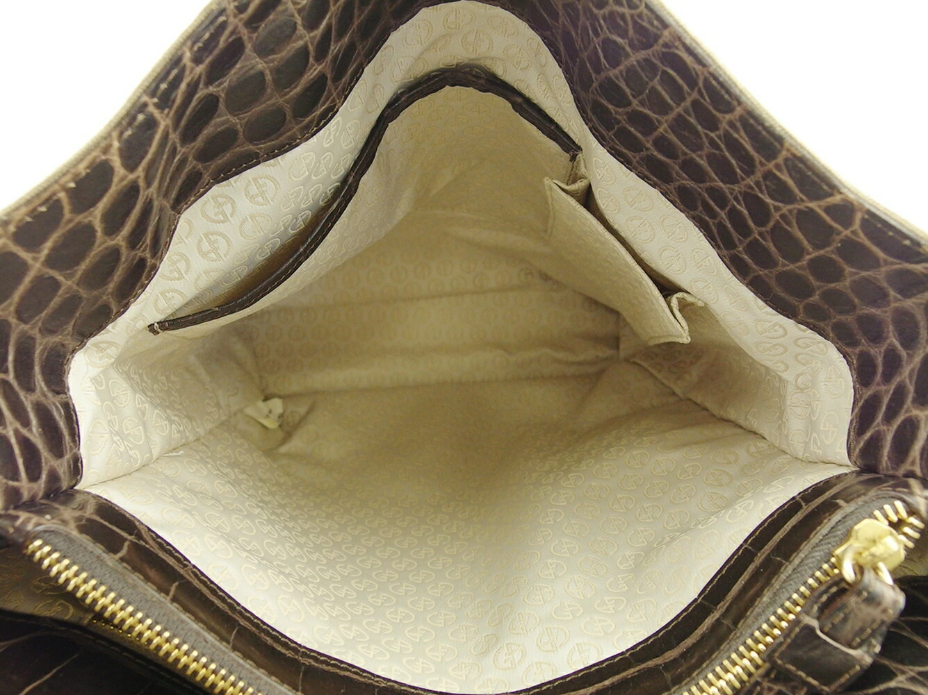 [Rakuten Super Sale ★ Up to 50% Off] Giorgio Armani Tote Bag, Crocodile-Embossed, Brown and Gold with Tassel, Men's, Pre-Owned, High-End, Vintage