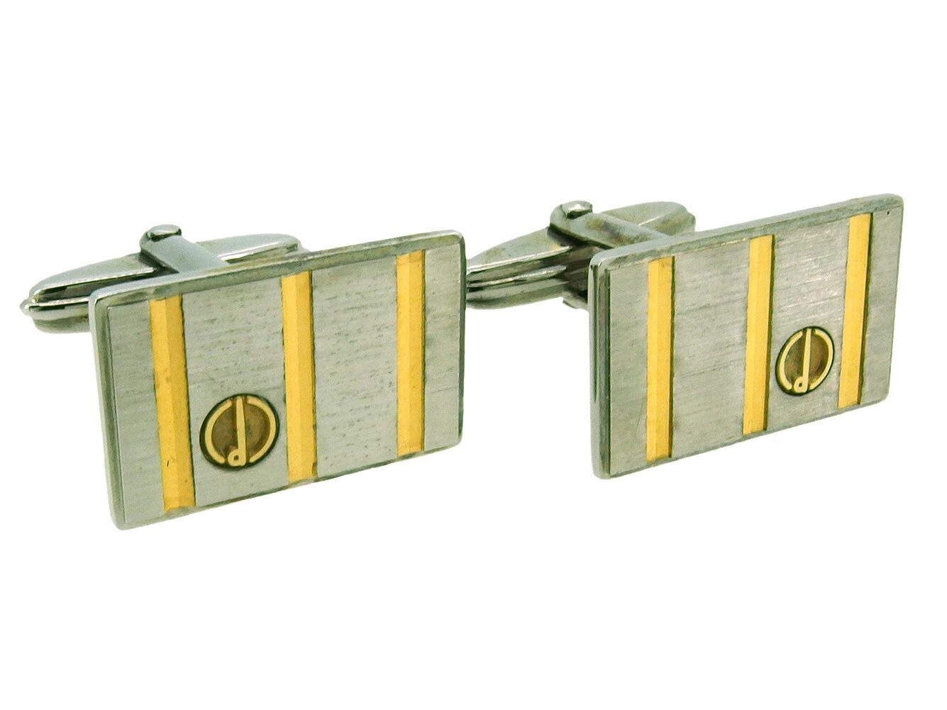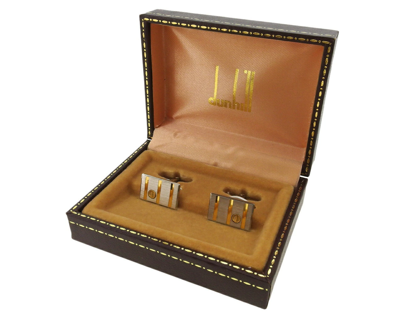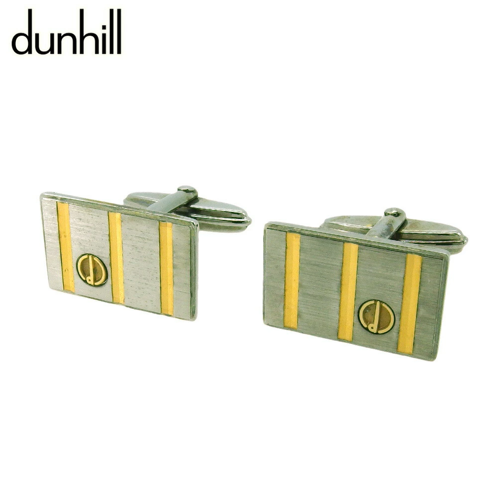 [Rakuten Super Sale ★ Up to 50% Off] Dunhill Cufflinks, D Mark, Square Shape, Swivel, Silver and Gold, Men's, Pre-owned, High-End Brand, Vintage