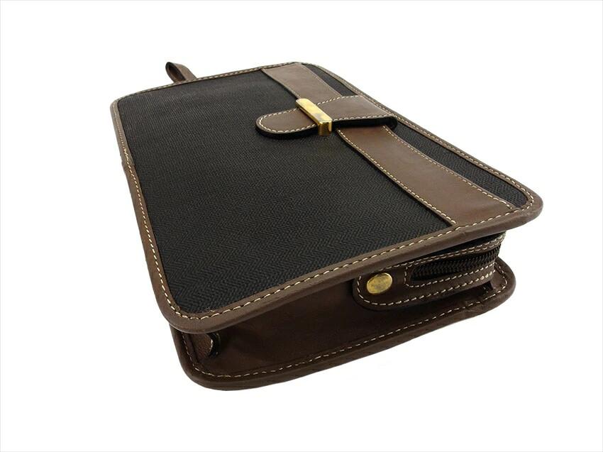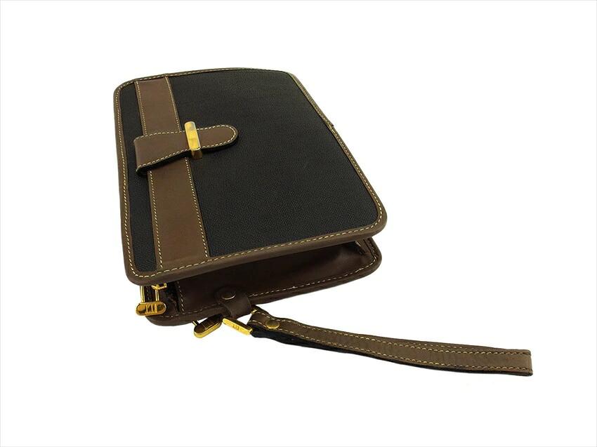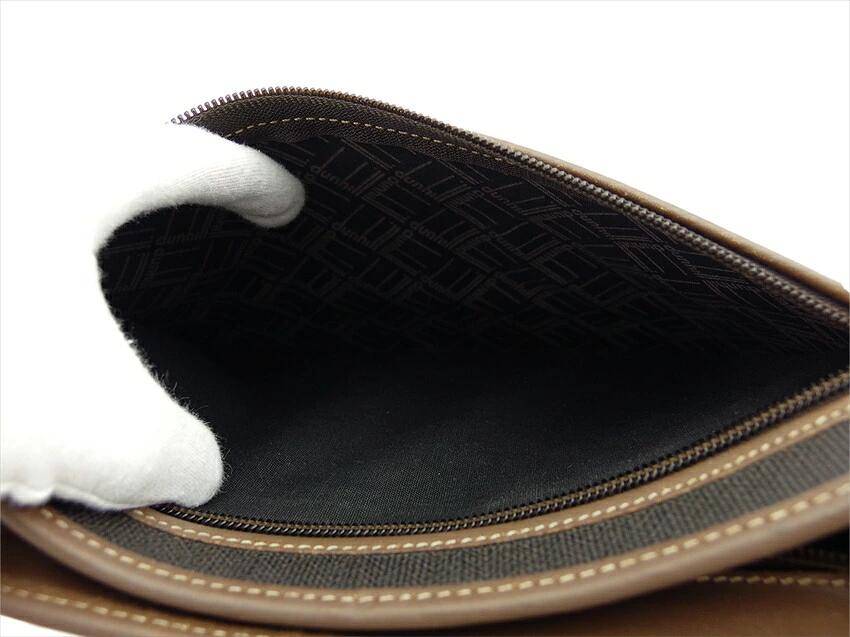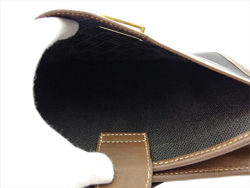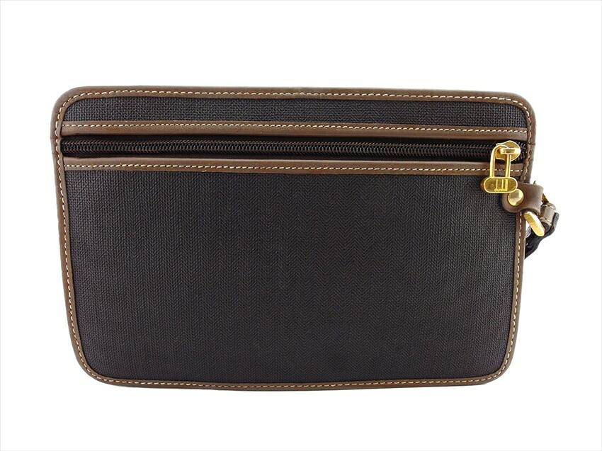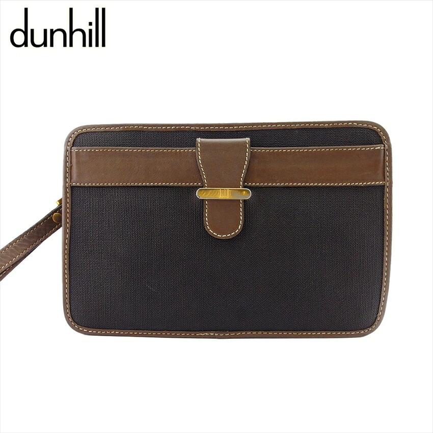 [Rakuten Super Sale ★ Up to 50% Off] Dunhill Clutch Bag Herringbone Black Brown Gold Women's Pre-owned High-End Vintage