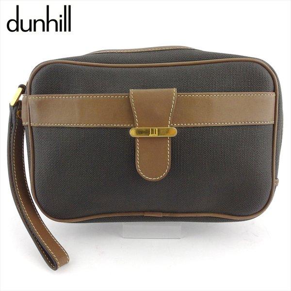 [Rakuten Super Sale ★ Up to 50% Off] Dunhill Clutch Bag Herringbone Black Brown Gold Women's Pre-owned High-End Vintage