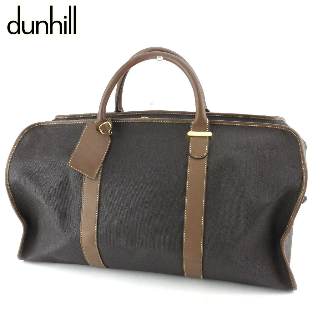 [Rakuten Super Sale ★ Up to 50% Off] Dunhill Boston Bag, Herringbone, Gray, Brown, Gold, Men's, Pre-owned, High-End, Vintage