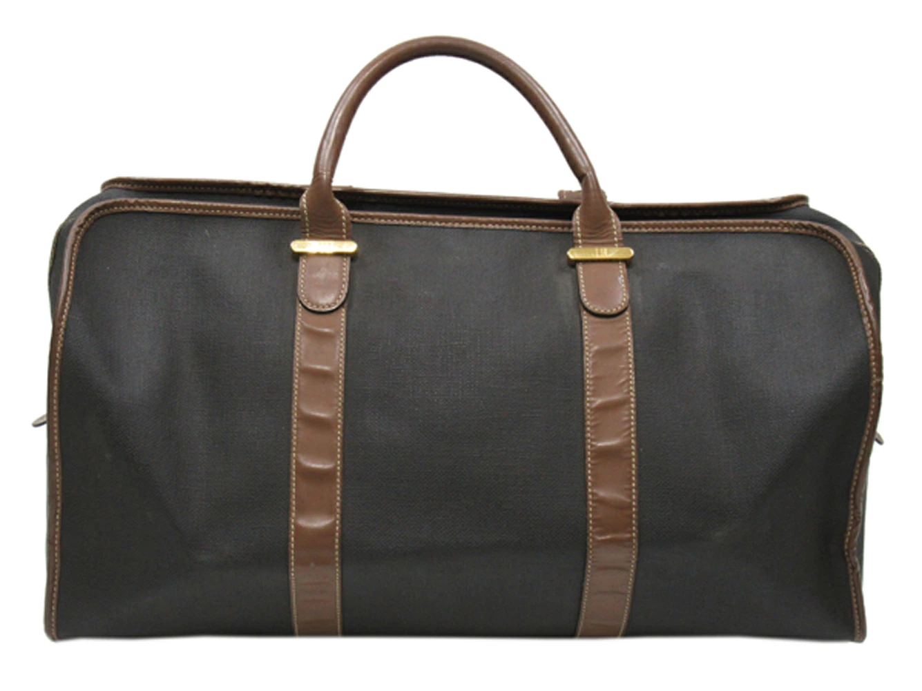 [Rakuten Super Sale ★ Up to 50% Off] Dunhill Boston Bag, Herringbone, Gray/Brown, Women's, Pre-owned, High-End, Vintage