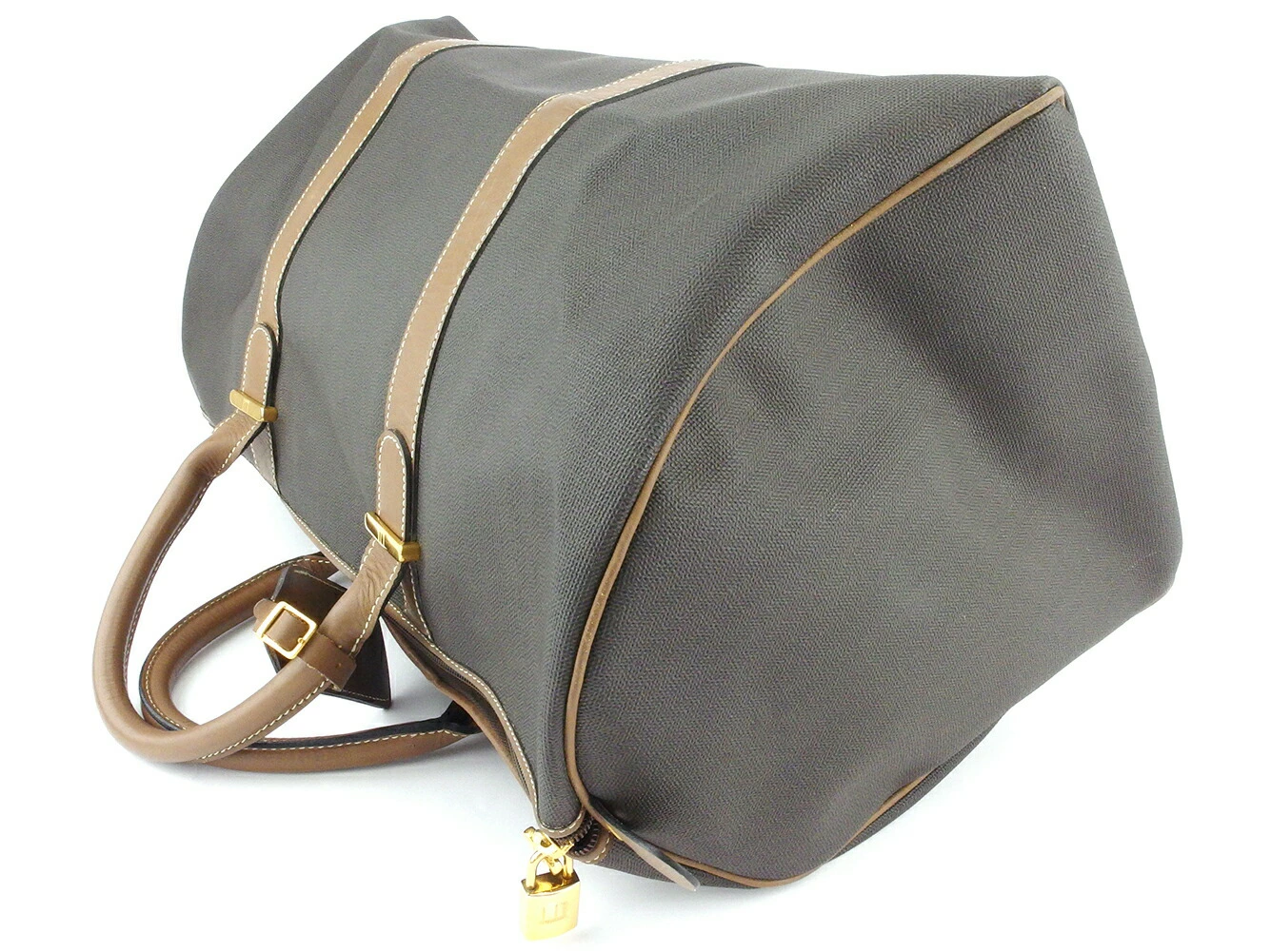 [Rakuten Super Sale ★ Up to 50% Off] Dunhill Boston Bag Herringbone Black Brown Gold Men's Pre-owned High-End Vintage