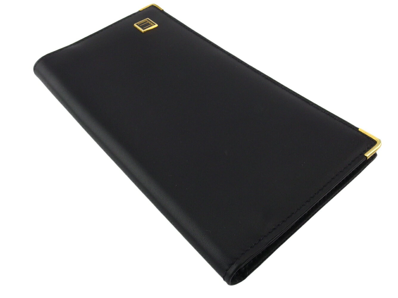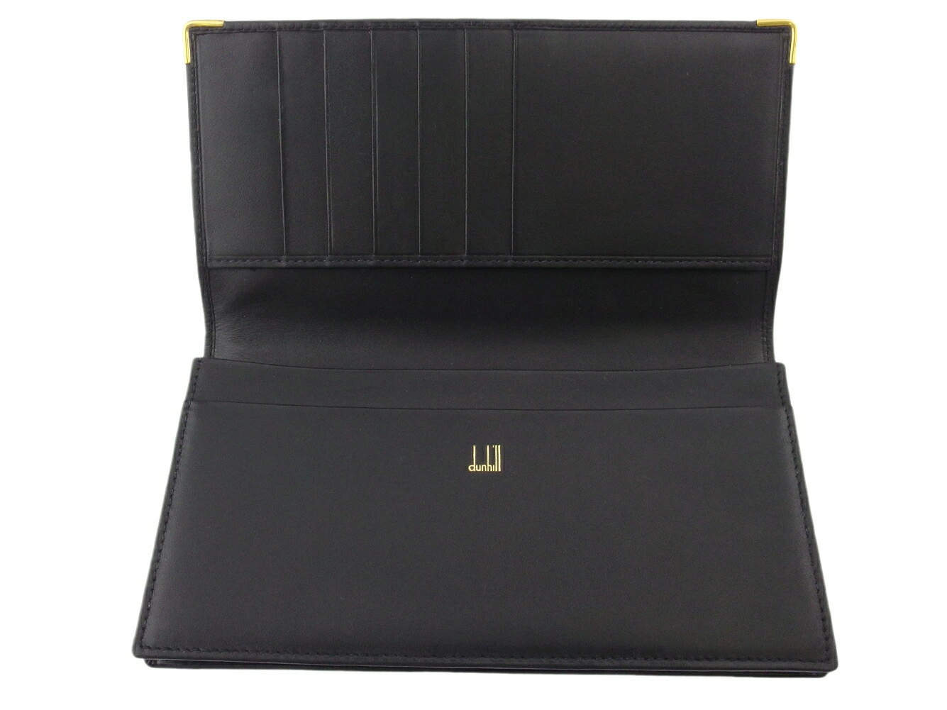 [Rakuten Super Sale ★ Up to 50% Off] Dunhill Billfold with Logo Plate, Black and Gold, Men's, Pre-owned, High-End Brand, Vintage