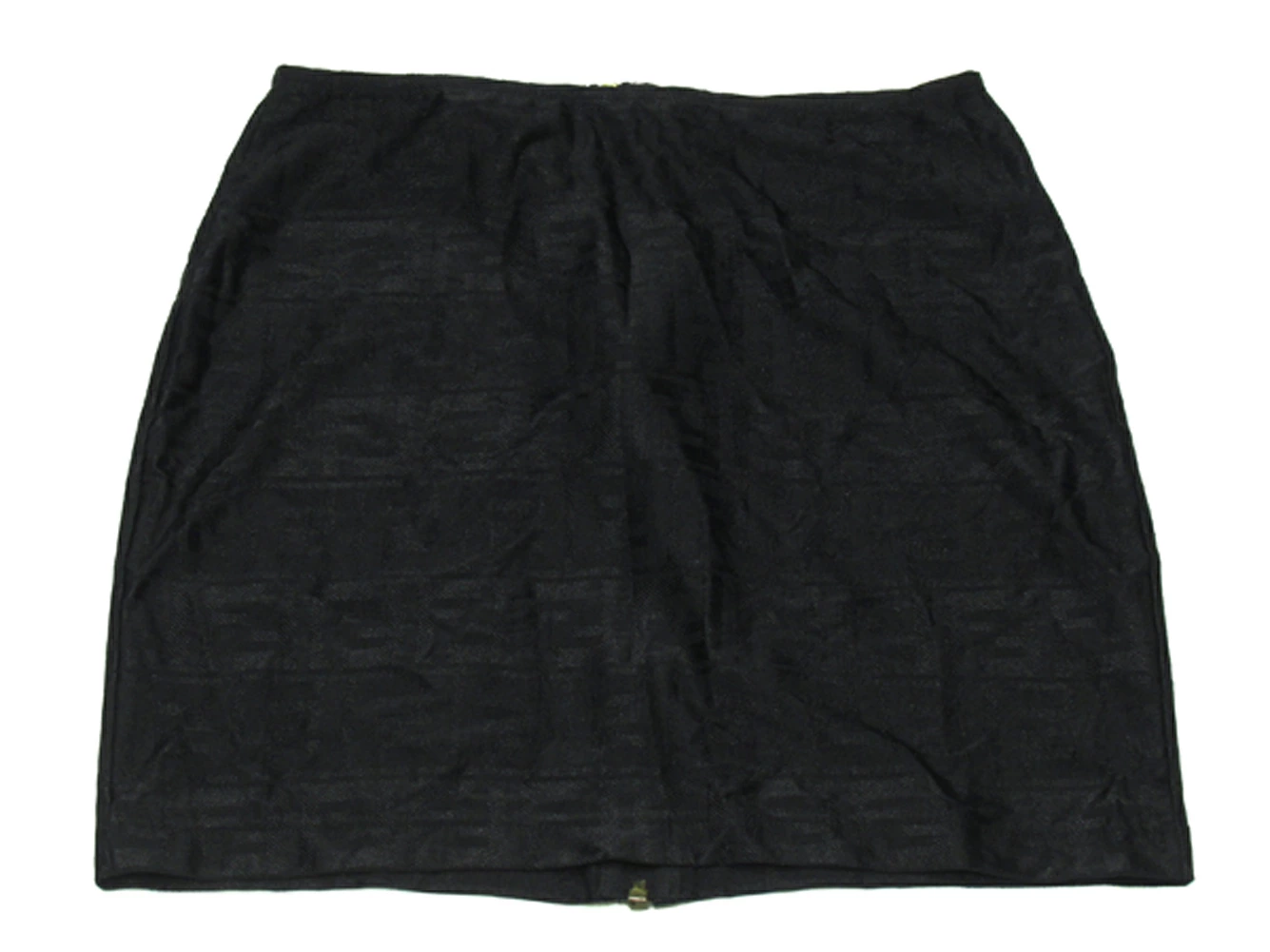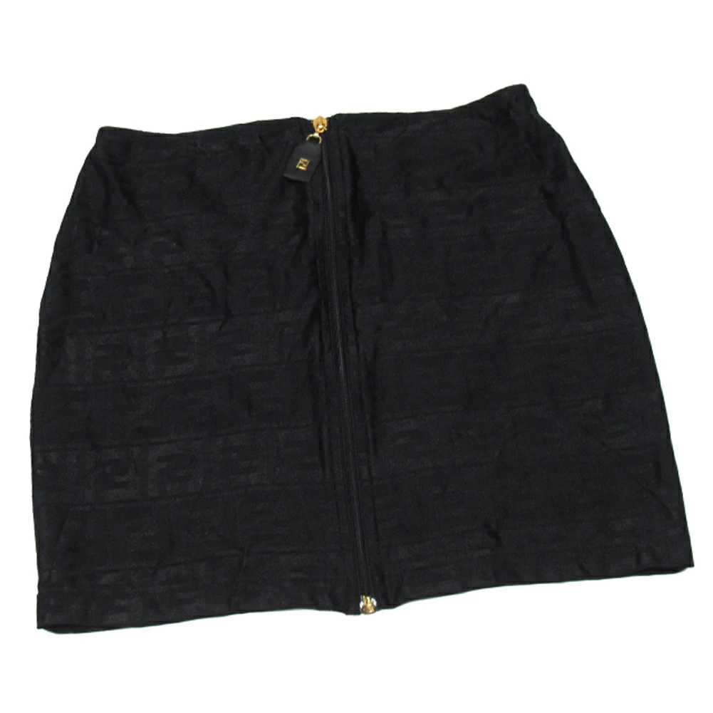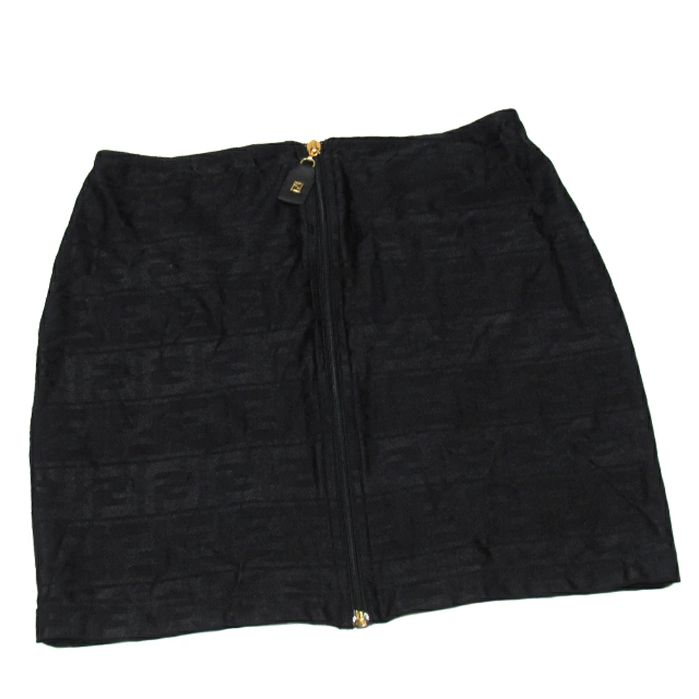 [Rakuten Super Sale ★ Up to 50% Off] Fendi Zucca Skirt, Size 44, Zip-Up, Black, Women's, Pre-owned, High-End Vintage