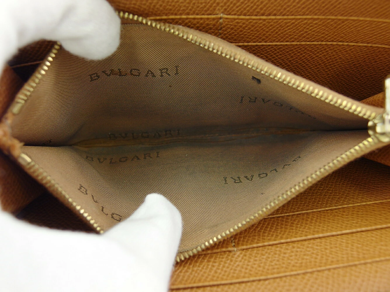 [Rakuten Super Sale ★ Up to 50% Off] Bvlgari Classico Long Wallet with Logo Charm, Light Brown and Gold, Men's, Pre-owned, High-End, Vintage