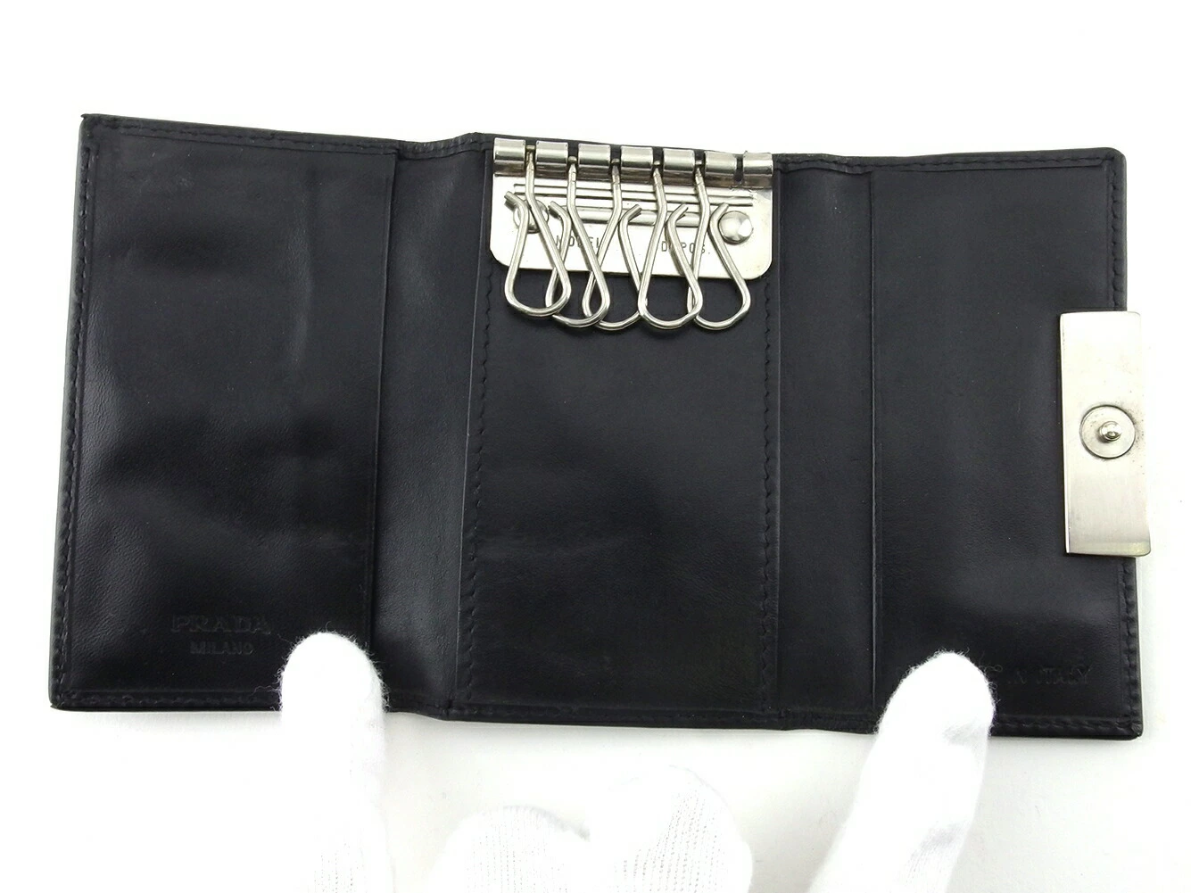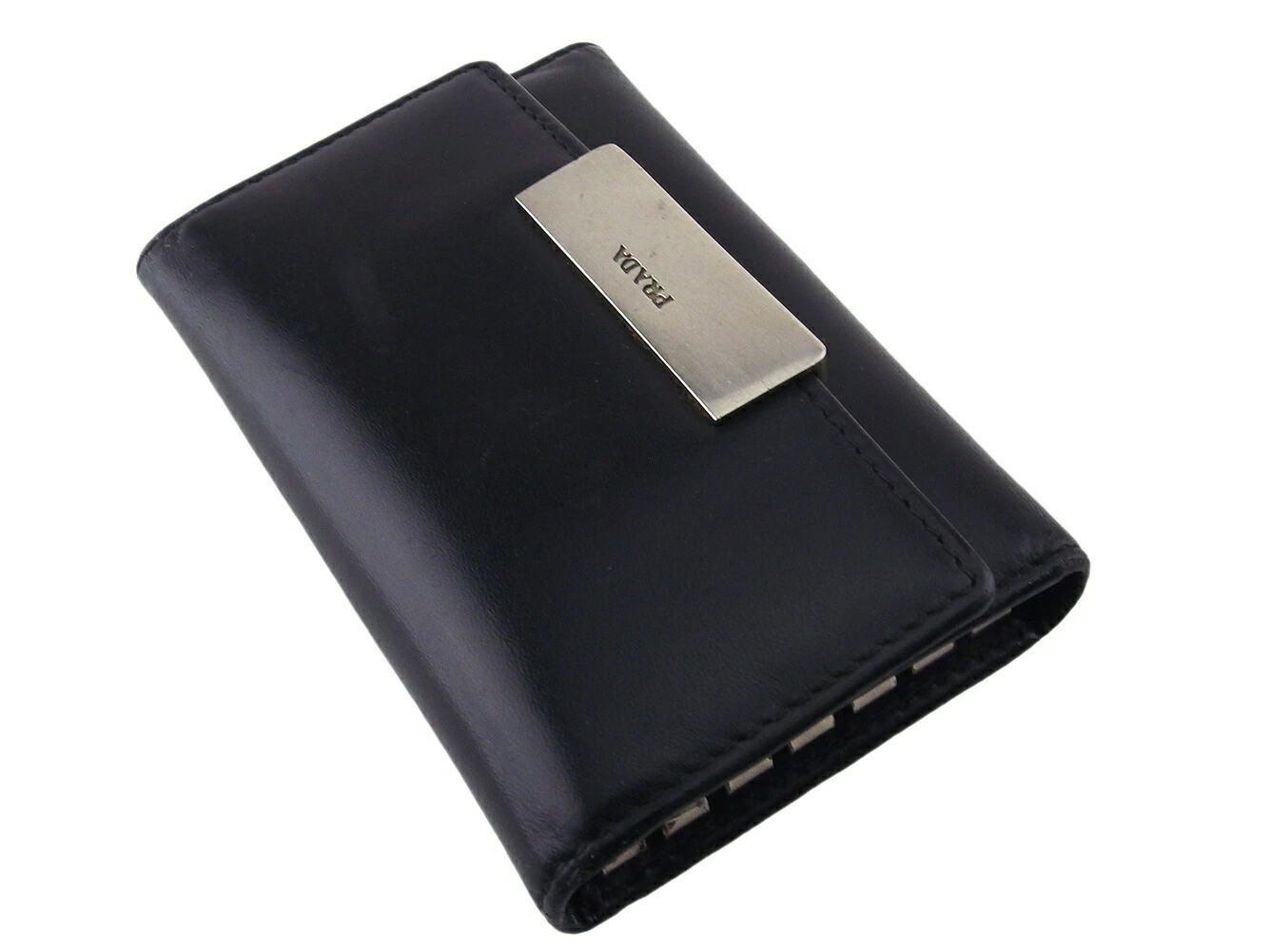 [Rakuten Super Sale ★ Up to 50% Off] Prada Key Case with Logo Plate, Black and Silver, Women's, Pre-owned, High-End Vintage