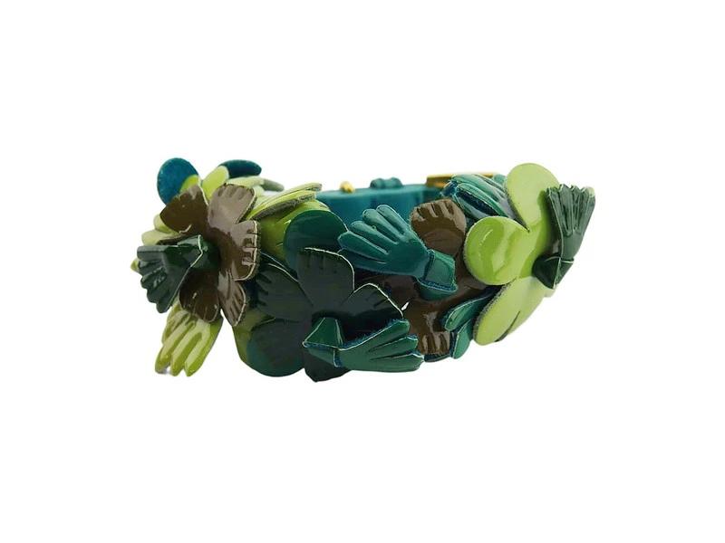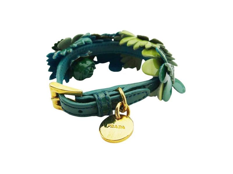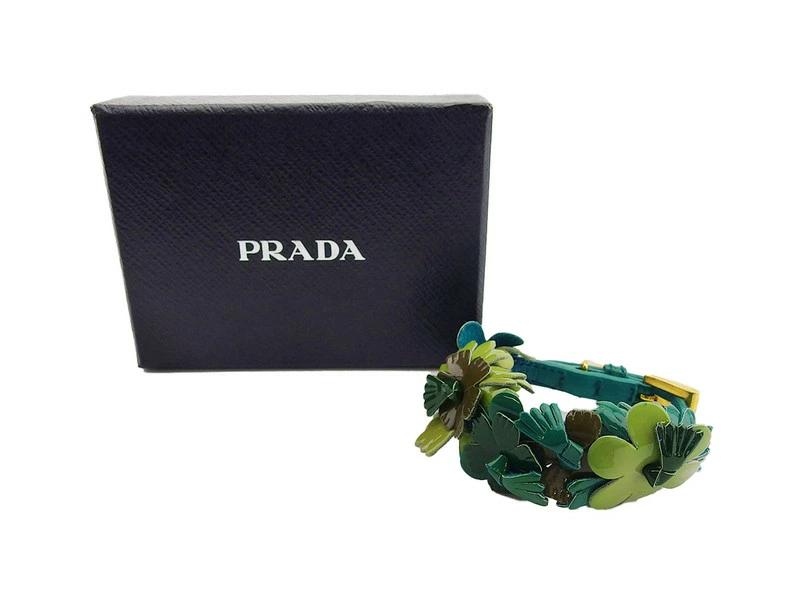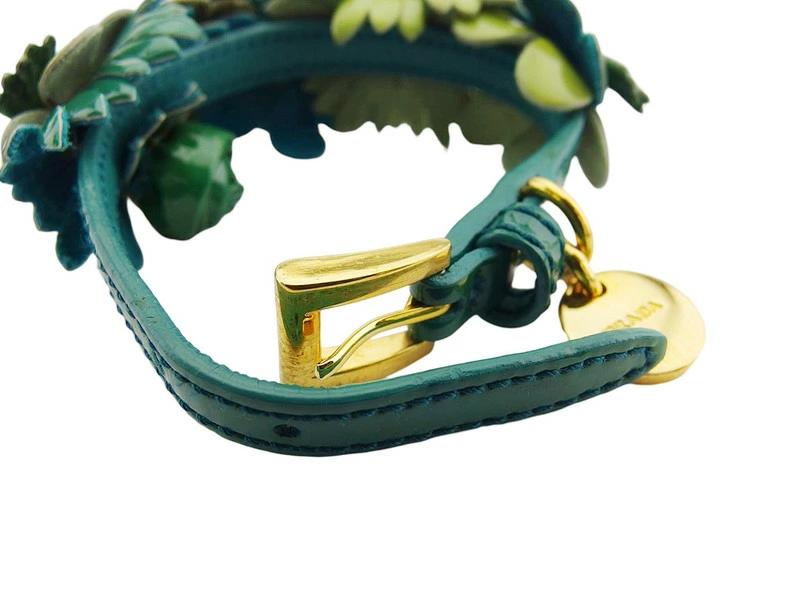 [Rakuten Super Sale ★ Up to 50% Off] Prada Bracelet with Flower Motif and Logo Charm in Green, Khaki, and Gold. Men's. Pre-owned. High-End Vintage.