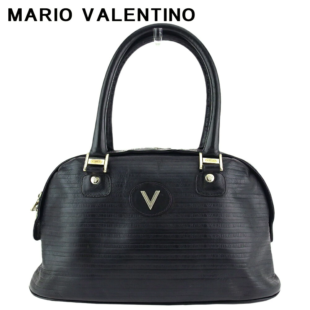 [Rakuten Super Sale ★ Up to 50% Off] Mario Valentino Handbag with V-Mark, Black, Silver, and Gold, Women's, Pre-owned, High-End, Vintage