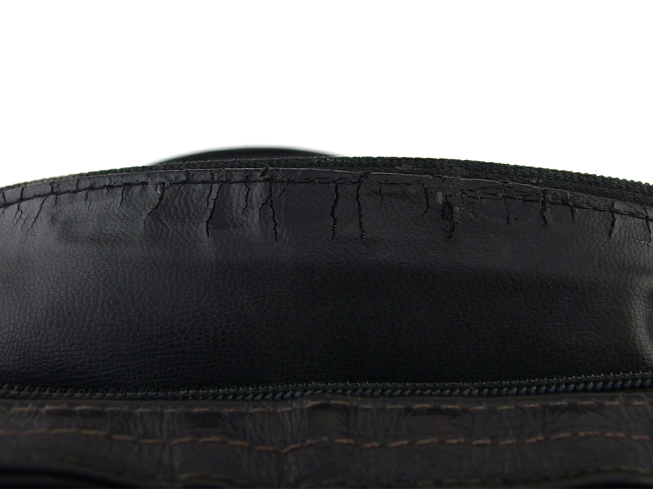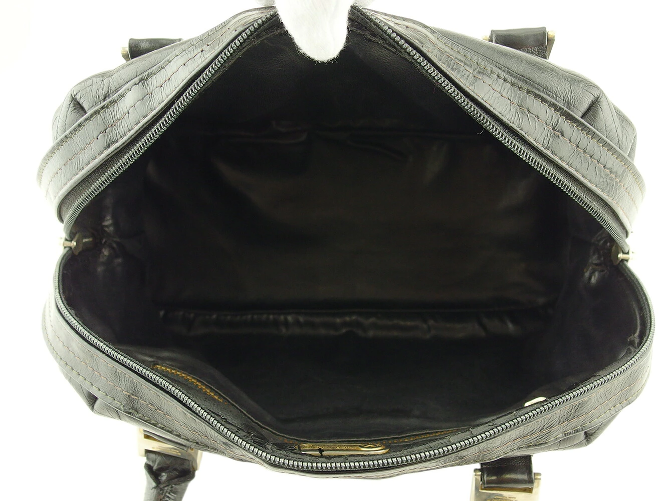コンディション全体の状態詳細:社外リペア跡(ハンドル付け根内側切れ補強接着2ヵ所)あり。その他 スレ&傷&汚れ(内側&ポケットもあり) ほつれ(開口部ステッチ所々) 金具ハゲ ヒビ割れ・ハガレ(ファスナーレーン内側等・) 劣化による粉ハガレ(内側&ポケット)などの使用感があります。