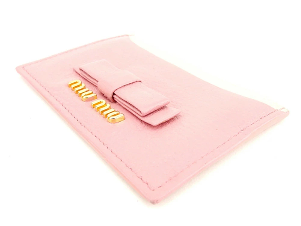 [Rakuten Super Sale ★ Up to 50% Off] Miu Miu Card Case with Ribbon Motif, Pink, Women's, Pre-owned, High-End, Vintage
