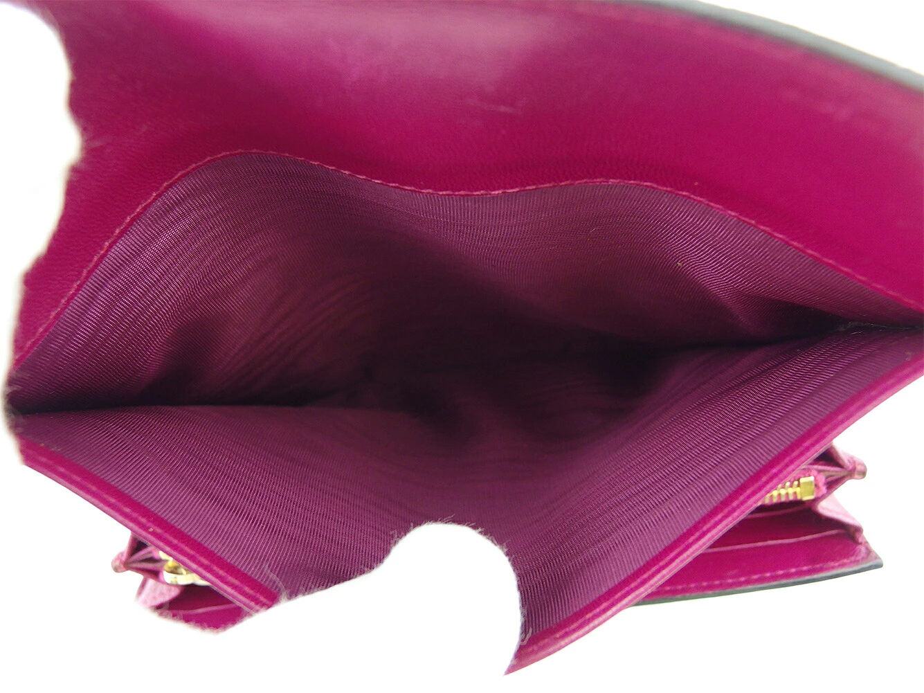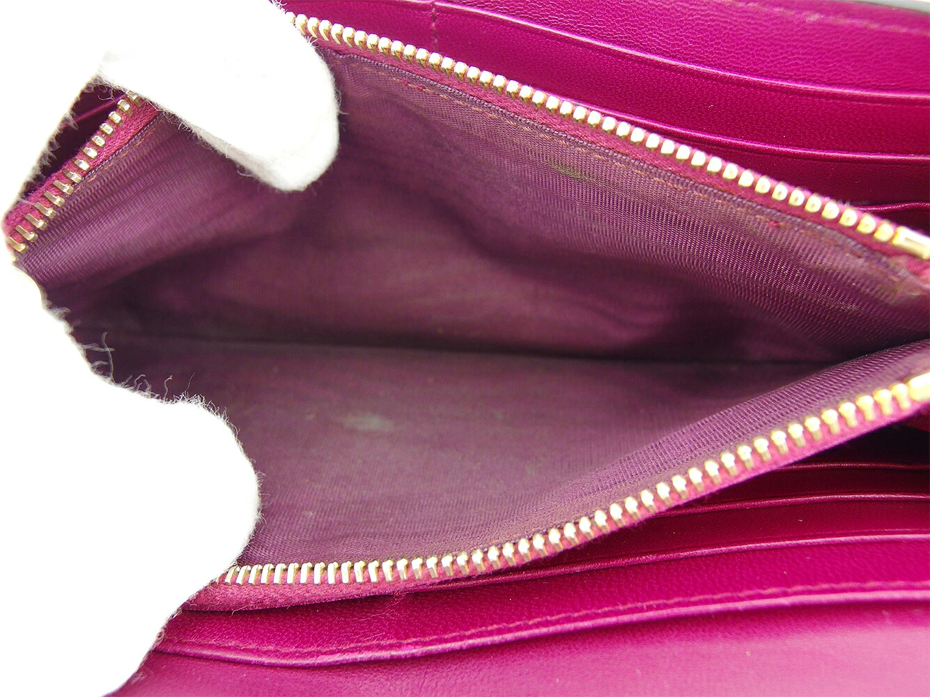 | コンディション | 全体の状態詳細:まだまだお使いいただけます。 社外リペア跡(フラップ内側等着色)。小銭入れに、スレ&黒ずみあり。その他 スレ&汚れ(内側&札入れ&カード入れ&ポケットもあり) 傷(内側もあり) 角スレ コーティングハガレ(角縁&リボン) 金具ハゲ コバヒビ割れ(角付近&ファスナープル革) ヒビ割れ小(角付近) などの使用感があります。 |
