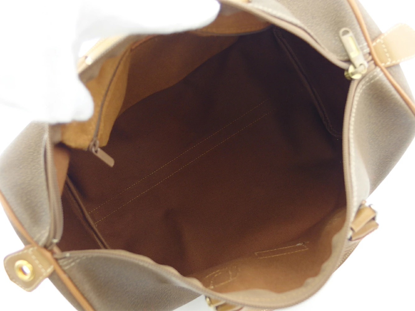 | コンディション | 全体の状態詳細:大きなダメージも無く、まだまだご使用いただけます。 外側:持ち手(傷、ハンドル上部に汚れ、接続金具のメッキハゲ箇所&くすみ)、ロゴプレート(傷)、ファスナーチャーム(傷、汚れ、くすみ、メッキハゲ、変色箇所)あり。 その他、目立たない 傷 汚れ などの一般的使用感があります。 |