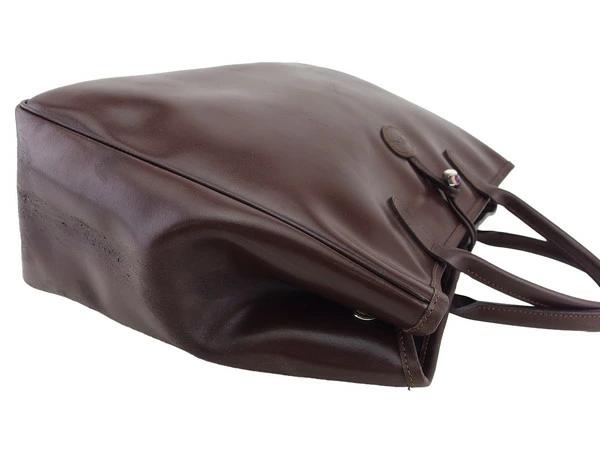 | コンディション | 全体の状態詳細:サイドにダメージがございますが、まだまだご使用いただけます。社外リペア(両サイドと底部分にレザー剥がれ&ヒビ割れ補修跡)、ループ留め金具(メッキハゲ&変色箇所)あり。外側:レザー(傷、若干の角スレ、サイドと底に劣化補修跡)、持ち手(小傷)あり。その他、目立たない 傷 汚れ などの一般的使用感があります。 |