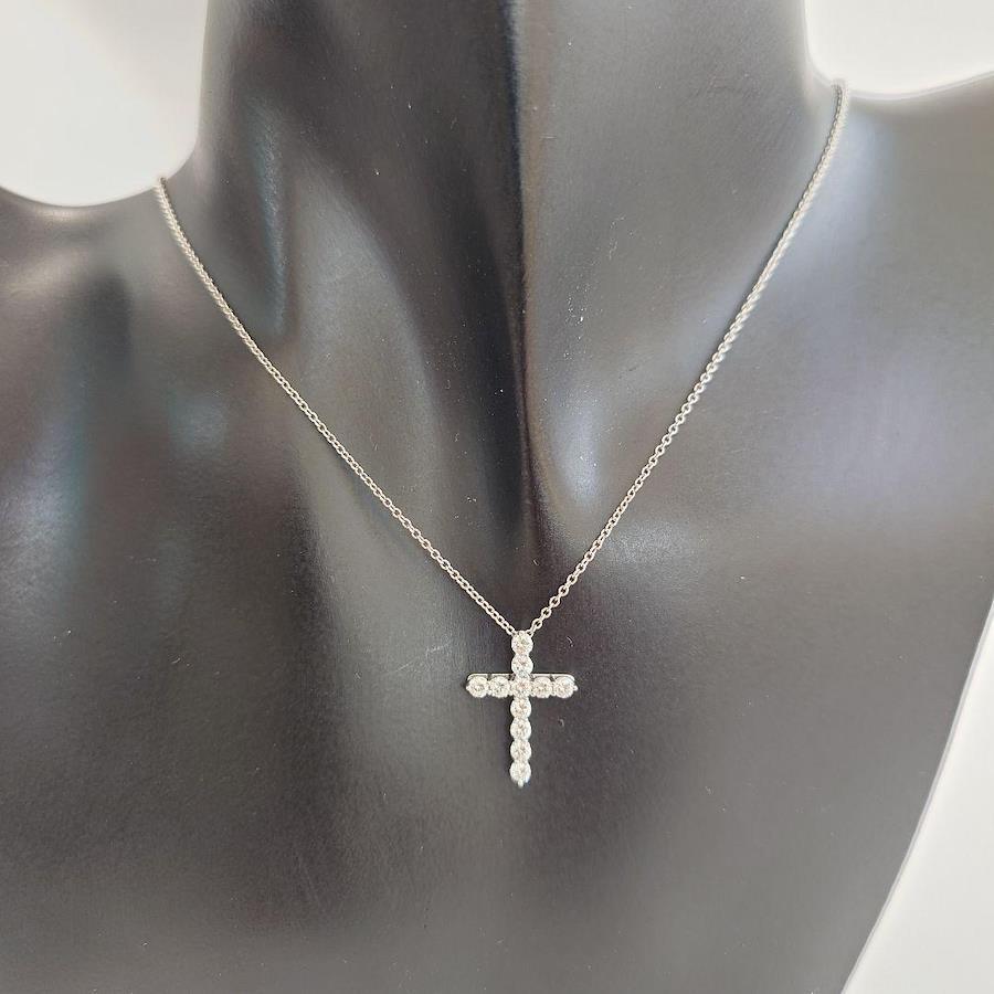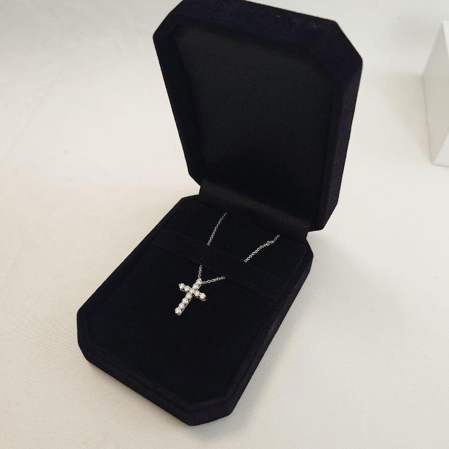 [Polished] Tiffany Small Cross Diamond Necklace 7217 Tiffany