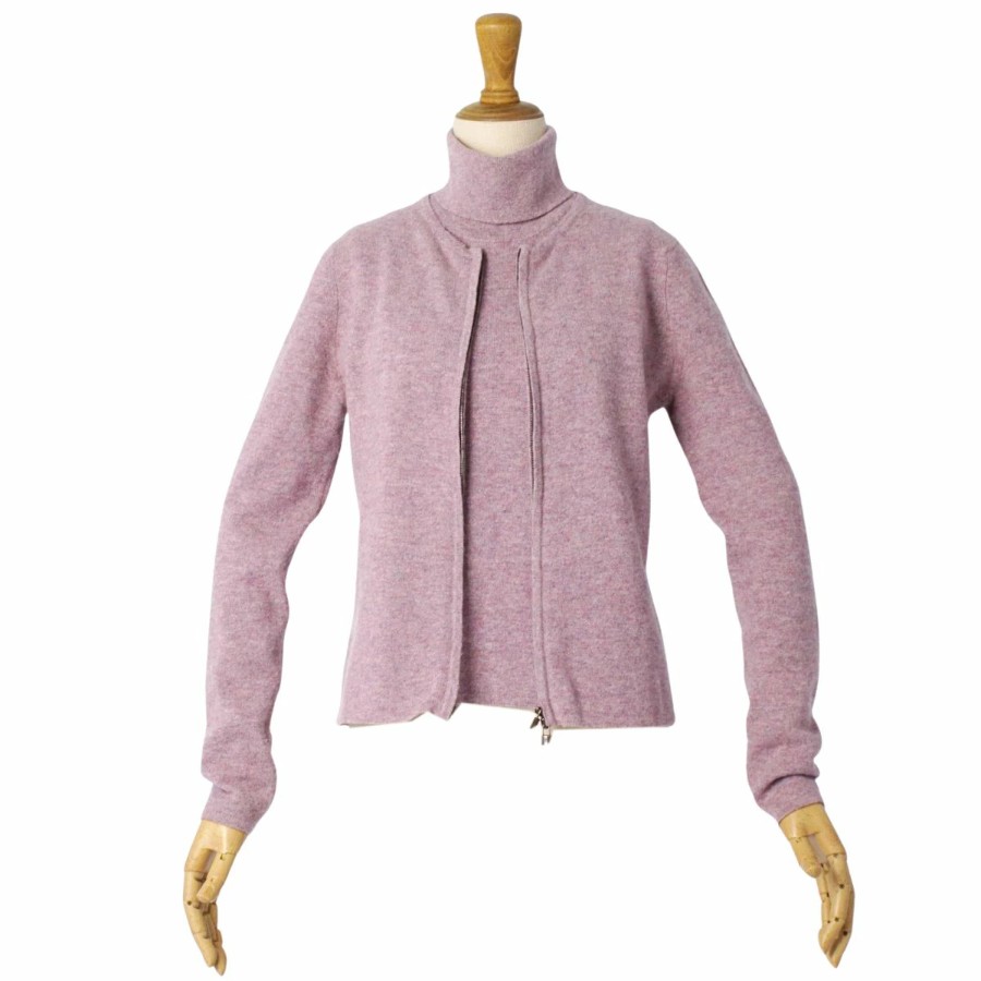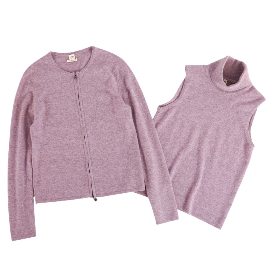 エルメス HERMES ゴルチエ期 アンサンブル ニット カーディガン カシミヤ トップス レディース スコットランド製 パープル サイズXS