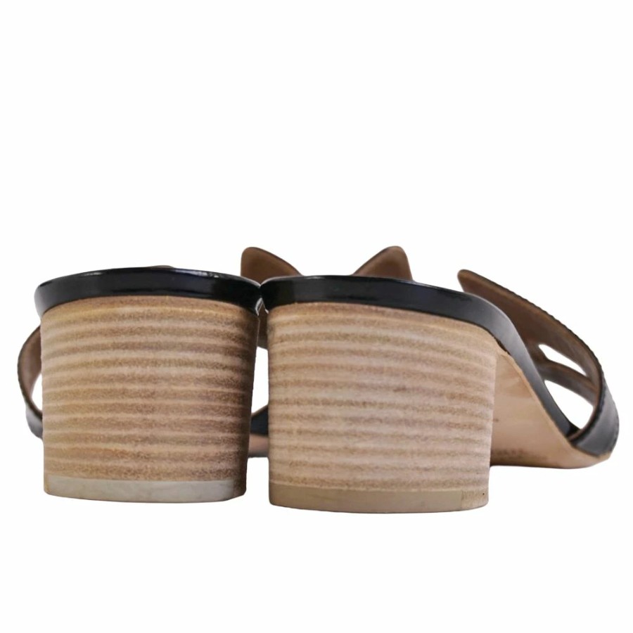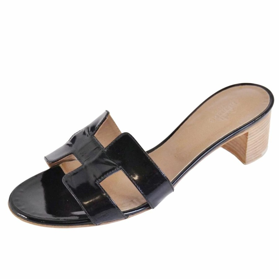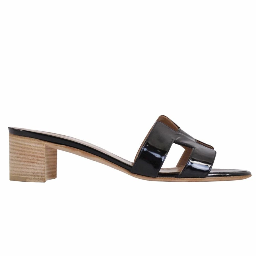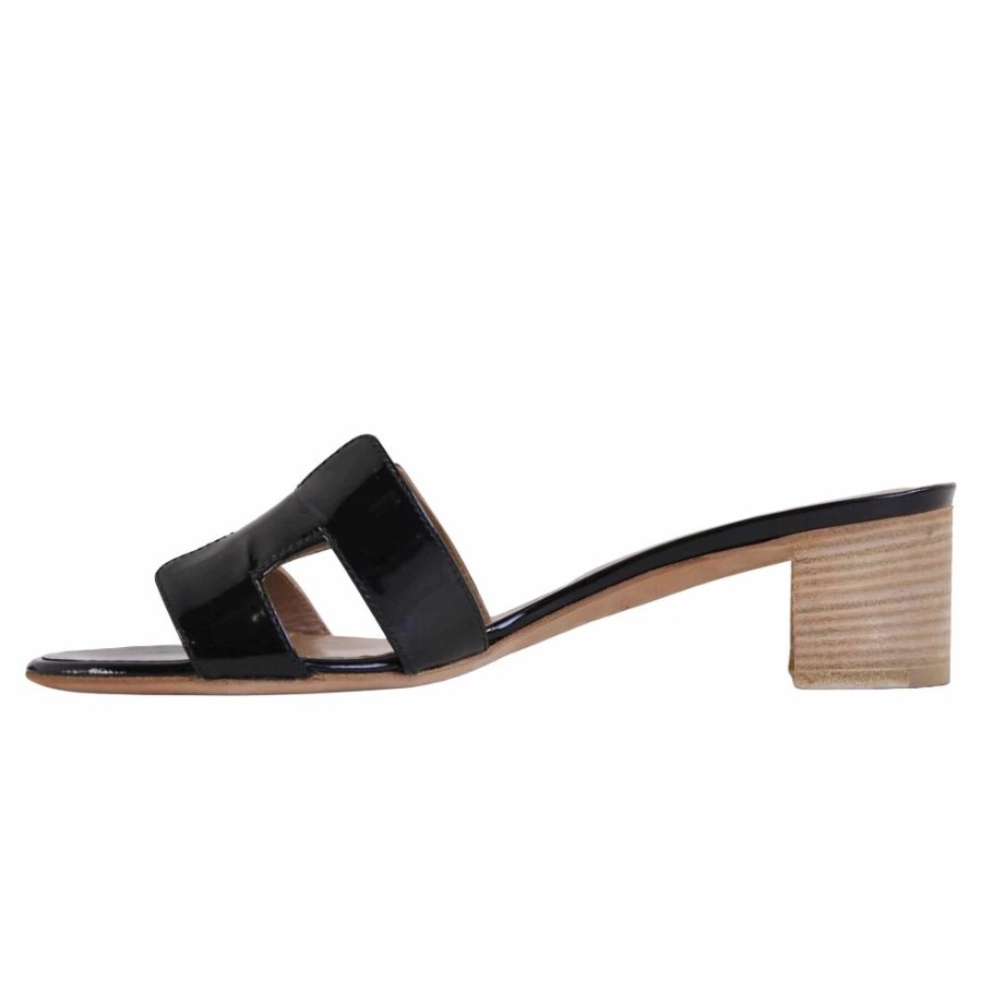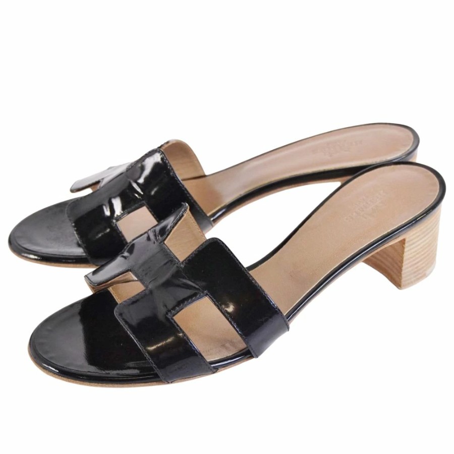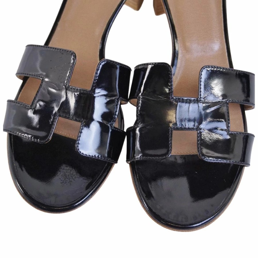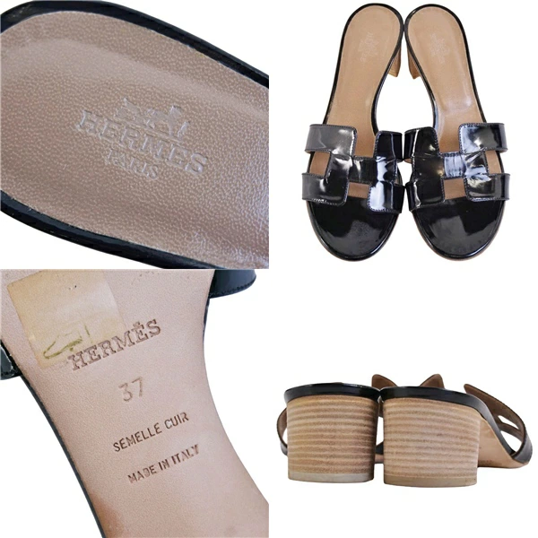 エルメス HERMES サンダル オアジス Hロゴ エナメルレザー ヒール シューズ 靴 レディース イタリア製 ブラック サイズ37(24cm相当)